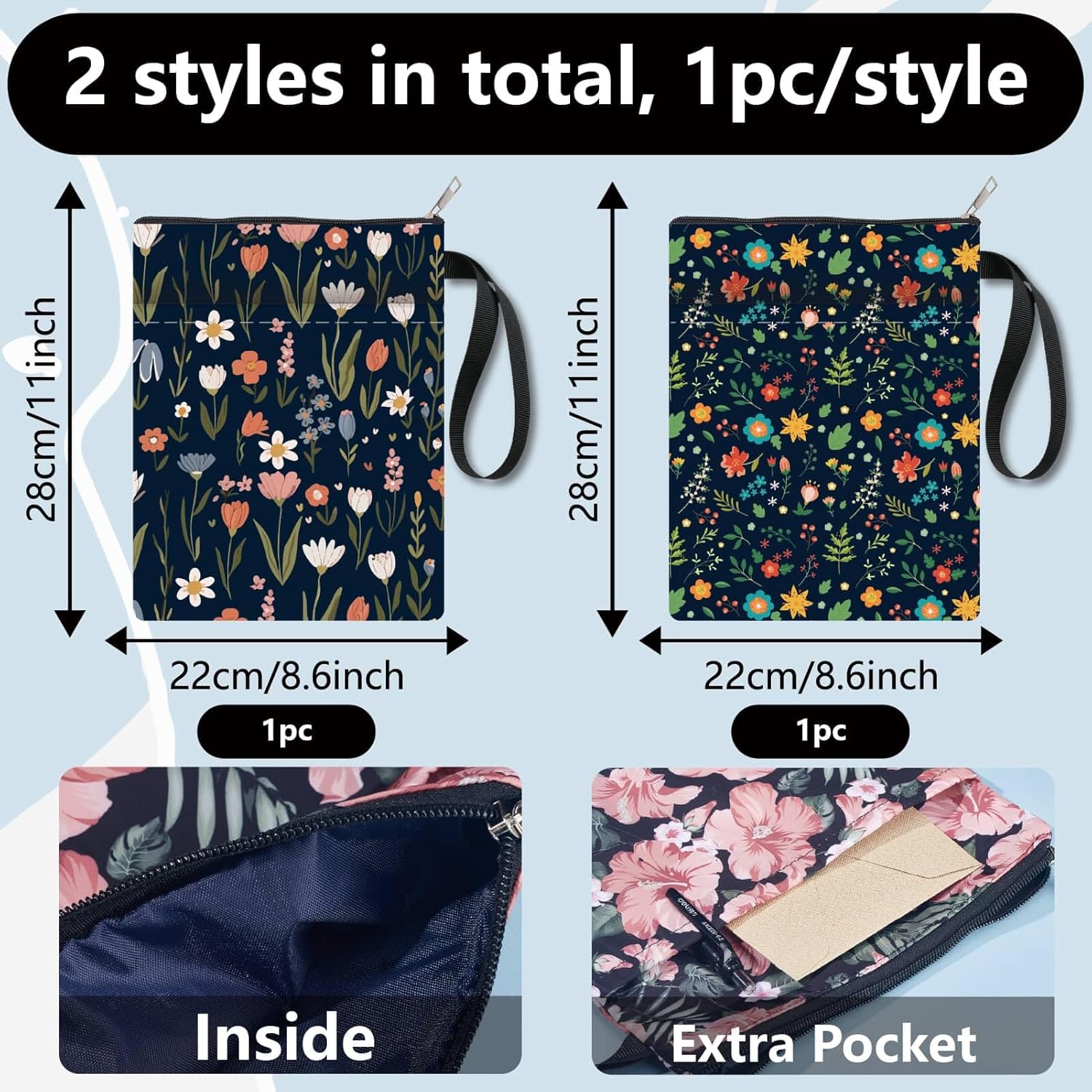 Copertina per libro con chiusura a zip: copertina per libro con chiusura a zip liscia, impedisce che le cose cadano dalla copertina del libro. Dimensioni: 28 x 22 cm. Adatto per la maggior parte dei libri autopubblicati, libri cartacei standard e copertine Si prega di verificare le dimensioni prima dell'acquisto. Copertina impermeabile per libri: la superficie della copertina del libro è realizzata in materiale impermeabile, può proteggere i libri dall'acqua e dagli attacchi dalle lacrime, borsa riutilizzabile per il lavaggio. Assicura che i libri siano nuovi e che le pagine non siano piegate. Manica a doppio lato: la copertina del libro mostra un motivo a doppia faccia di margherite e fiori rosa, la fodera è blu scuro. Il motivo e il colore sono vivaci e chiari. Tasca aggiuntiva: la parte anteriore della copertina del libro è dotata di una piccola tasca, biro, telefono cellulare, cuffie, occhiali da sole, chiavi e altri piccoli oggetti possono essere conservati nella tasca, mantenere le cose in ordine. Ottimo regalo: la copertina del libro è un buon regalo per gli amanti dei libri, donne, amici, insegnanti e colleghi. Un libro per la festa della mamma, matrimonio, anniversario, laurea, celebrazione, compleanno, Natale, regali di ringraziamento, libri con copertina rigida, libri in brossura, libri morbidi, pad, romanzi e così via. Quando fuori, libri preferiti o quaderni possono essere inseriti nel porta libri, rende il libro facile da trasportare.