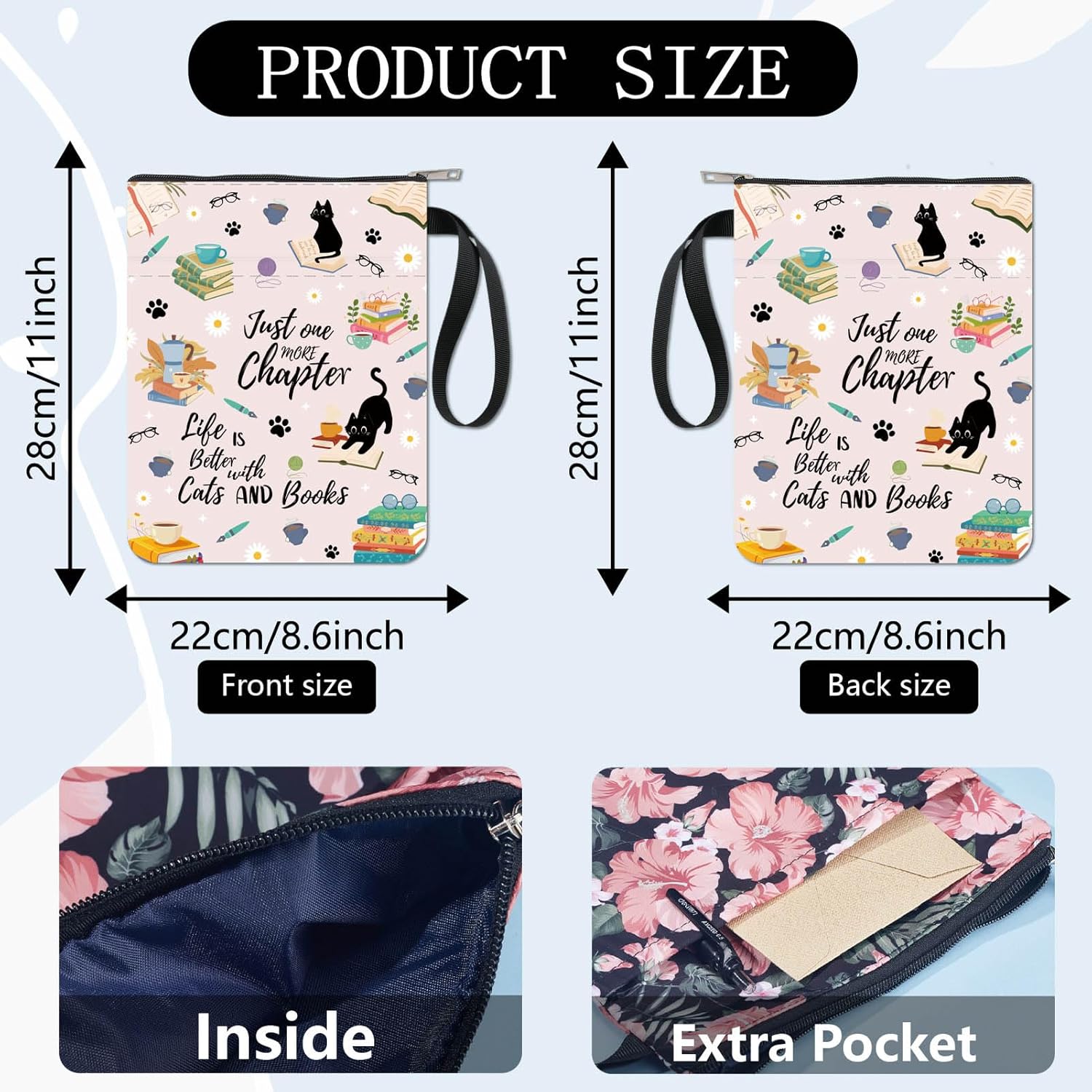 Buste per libri con gatti: copertina di libro rosa antico, modello di gattino carino, può proteggere il tuo libro dalla polvere o dalle pagine strappate e piegate, questo è anche il miglior regalo per gli amanti dei libri. Dimensione: circa 8.66 pollice (220 mm) di larghezza, 11.02 pollice (280 mm) di lunghezza. Si adatta alla maggior parte dei libri autopubblicati, tascabili standard, tascabili di massa, e copertine rigide regolari. Assicurati di misurare il tuo articolo prima dell'acquisto per assicurarti che funzioni per te. Tessuto lavabile: realizzato in tessuto lavabile, la fodera nera è resistente allo sporco e presenta una chiusura con cerniera liscia di alta qualità per una maggiore protezione. Sottile e leggero, non ingombra il tuo libro, può facilmente scivolare nella tua valigetta, zaino o altra borsa. Tasca extra sulla manica: questa copertina del libro non può contenere solo libri, la tasca extra sulla manica può contenere anche penne, occhiali, segnalibri, bloc notes, cuffie e altri accessori, pratico e bello in uno. Ampio utilizzo: queste custodie per libri possono essere utilizzate per proteggere i libri, libri di testo o quaderni ed è adatto agli studenti, insegnanti, scrittori, studiosi, librerie o chiunque ami i libri o voglia distinguerli facilmente.