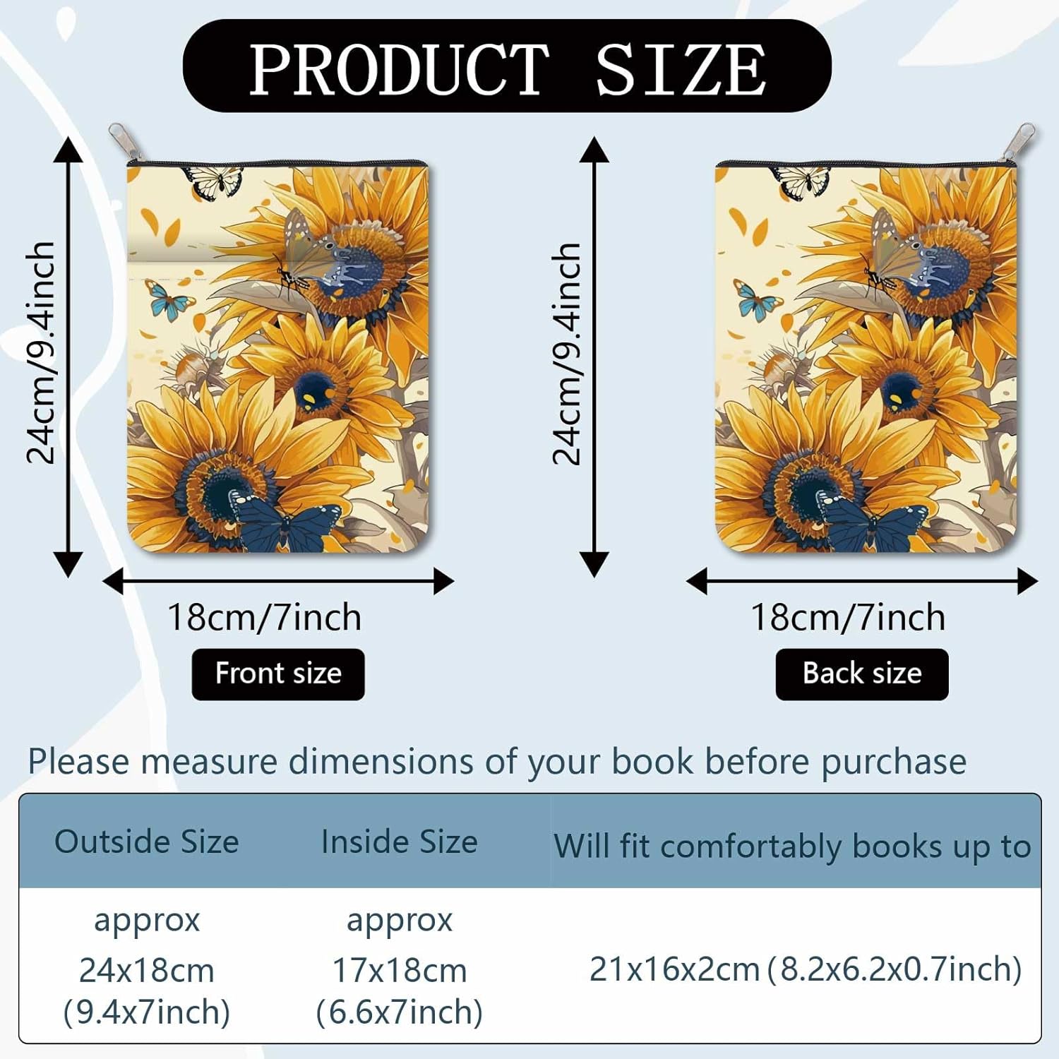 CUSTODIA PER LIBRI GIRASOLE:La copertina del libro ha un motivo elegante e innovativo, che protegge il tuo libro dalla polvere o dalle pagine strappate e piegate, ed è anche un regalo perfetto per gli amanti dei libri. DIMENSIONE:copertina del libro larga circa 7 pollice (18cm )., 9.4 pollice (24cm ) di lunghezza. Si adatta alla maggior parte dei libri autopubblicati, tascabili standard, tascabili di massa, e copertine rigide regolari. Assicurati di misurare il tuo articolo prima dell'acquisto per assicurarti che funzioni per te. TESSUTO LAVABILE:Realizzato in tessuto lavabile, la fodera nera è resistente allo sporco e presenta una chiusura con cerniera liscia di alta qualità per una maggiore protezione. Sottile e leggero, non ingombra il tuo libro, può facilmente scivolare nella tua valigetta, zaino o altra borsa. TASCA EXTRA SULLA MANICA:questa copertina del libro non può contenere solo libri, la tasca extra sulla manica può contenere anche penne, occhiali, segnalibri, bloc notes, cuffie e altri accessori, pratico e bello in uno. AMPIO UTILIZZO:queste custodie per libri possono essere utilizzate per proteggere i libri, libri di testo o quaderni ed è adatto agli studenti, insegnanti, scrittori, studiosi, librerie o chiunque ami i libri o voglia distinguerli facilmente.