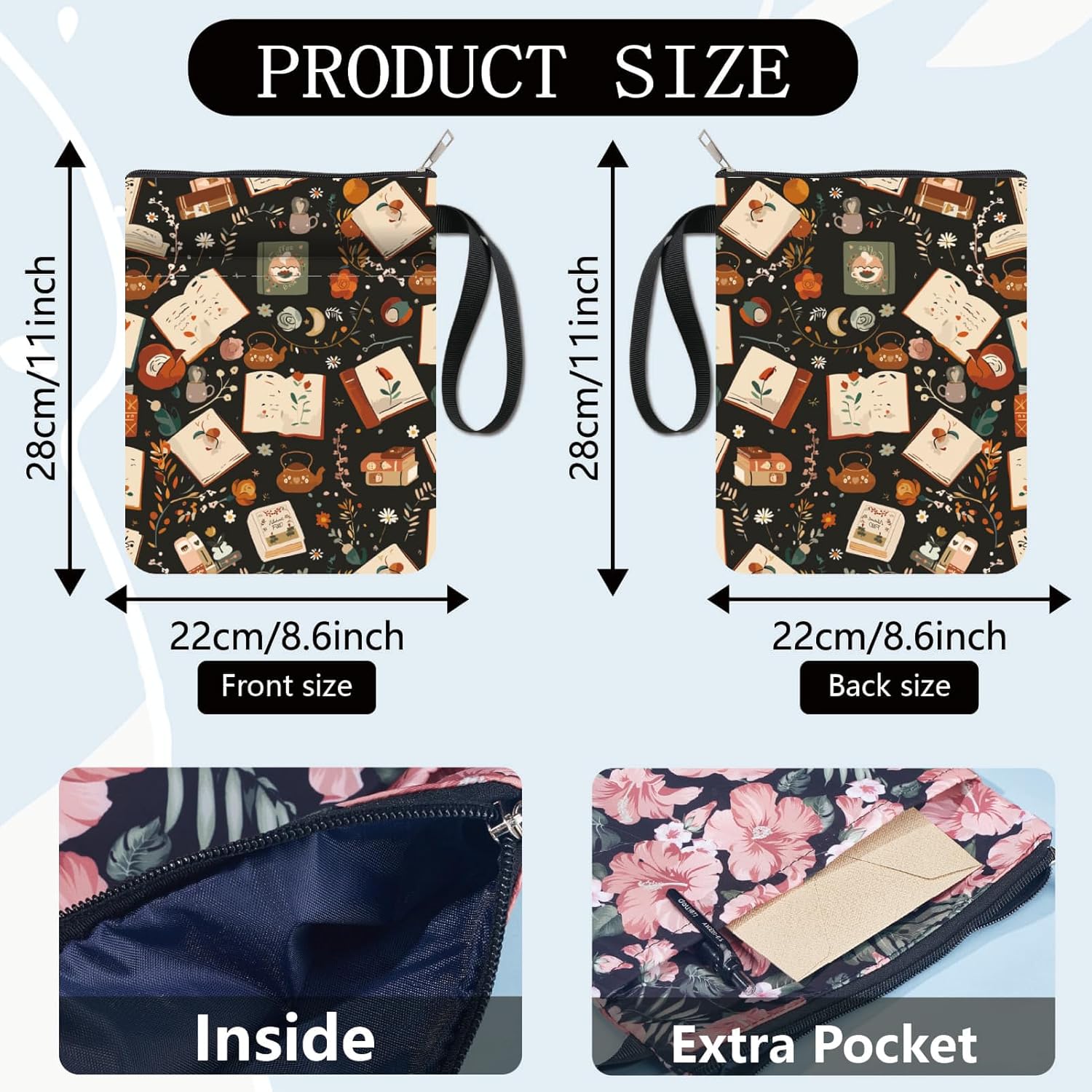 CUSTODIA PER LIBRI RETRO:la copertina del libro ha un motivo elegante e innovativo, che protegge il tuo libro dalla polvere o dalle pagine strappate e piegate, ed è anche un regalo perfetto per gli amanti dei libri. DIMENSIONE:copertina del libro larga circa 8.6 pollice (22cm )., 11 pollice (28cm ) di lunghezza. Si adatta alla maggior parte dei libri autopubblicati, tascabili standard, tascabili di massa, e copertine rigide regolari. Assicurati di misurare il tuo articolo prima dell'acquisto per assicurarti che funzioni per te. TESSUTO LAVABILE:Realizzato in tessuto lavabile, la fodera nera è resistente allo sporco e presenta una chiusura con cerniera liscia di alta qualità per una maggiore protezione. Sottile e leggero, non ingombra il tuo libro, può facilmente scivolare nella tua valigetta, zaino o altra borsa. TASCA EXTRA SULLA MANICA:questa copertina del libro non può contenere solo libri, la tasca extra sulla manica può contenere anche penne, occhiali, segnalibri, bloc notes, cuffie e altri accessori, pratico e bello in uno. AMPIO UTILIZZO:queste custodie per libri possono essere utilizzate per proteggere i libri, libri di testo o quaderni ed è adatto agli studenti, insegnanti, scrittori, studiosi, librerie o chiunque ami i libri o voglia distinguerli facilmente.
