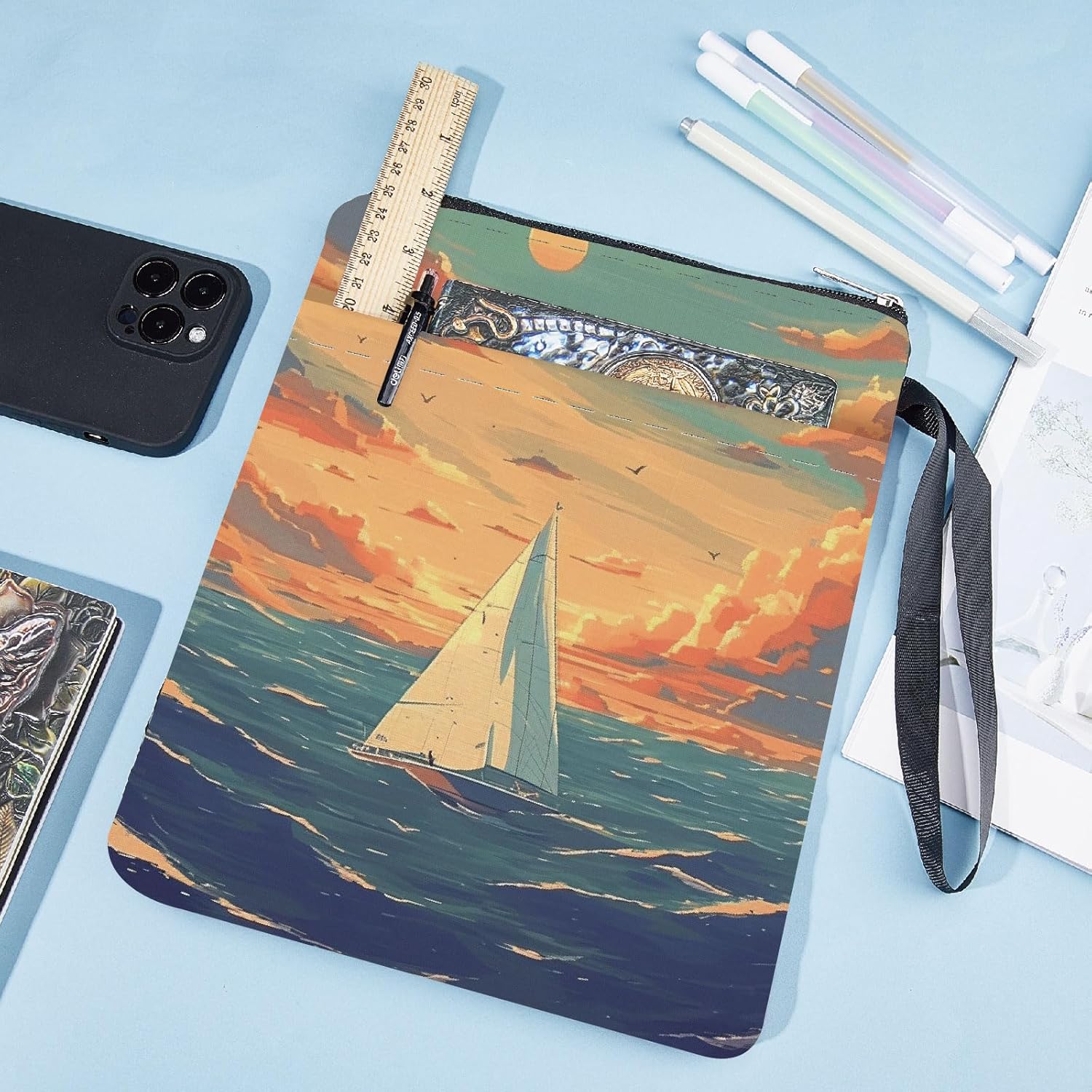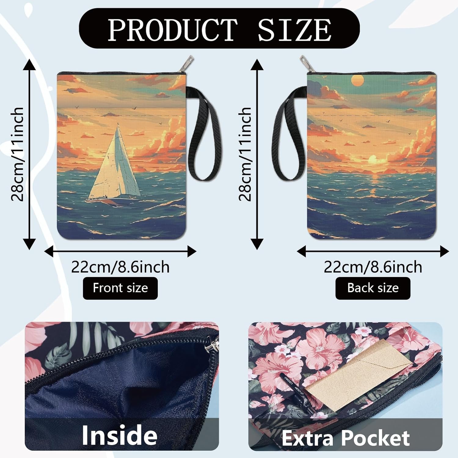 MANICA DEL LIBRO PER BARCA A VELA:la copertina del libro ha un modello elegante e innovativo, che protegge il tuo libro dalla polvere o dalle pagine strappate e piegate, ed è anche un regalo perfetto per gli amanti dei libri. DIMENSIONE:copertina del libro larga circa 8.66 pollice (22cm )., 11.02 pollice (28cm ) di lunghezza. Si adatta alla maggior parte dei libri autopubblicati, tascabili standard, tascabili di massa, e copertine rigide regolari. Assicurati di misurare il tuo articolo prima dell'acquisto per assicurarti che funzioni per te. TESSUTO LAVABILE:Realizzato in tessuto lavabile, la fodera nera è resistente allo sporco e presenta una chiusura con cerniera liscia di alta qualità per una maggiore protezione. Sottile e leggero, non ingombra il tuo libro, può facilmente scivolare nella tua valigetta, zaino o altra borsa. TASCA EXTRA SULLA MANICA:questa copertina del libro non può contenere solo libri, la tasca extra sulla manica può contenere anche penne, occhiali, segnalibri, bloc notes, cuffie e altri accessori, pratico e bello in uno. AMPIO UTILIZZO:queste custodie per libri possono essere utilizzate per proteggere i libri, libri di testo o quaderni ed è adatto agli studenti, insegnanti, scrittori, studiosi, librerie o chiunque ami i libri o voglia distinguerli facilmente.
