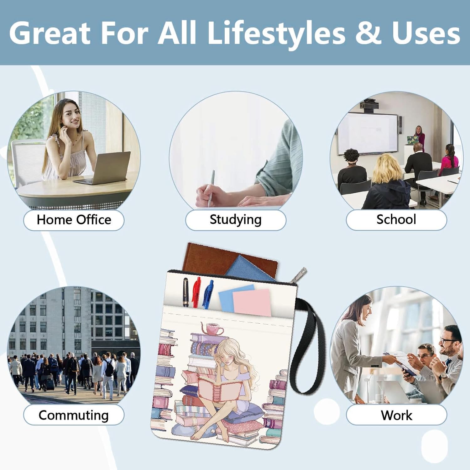 MANICA DEL LIBRO PER RAGAZZA DA LETTURA:la copertina del libro ha un modello elegante e innovativo, che protegge il tuo libro dalla polvere o dalle pagine strappate e piegate, ed è anche un regalo perfetto per gli amanti dei libri. DIMENSIONE:copertina del libro larga circa 8.66 pollice (22cm )., 11.02 pollice (28cm ) di lunghezza. Si adatta alla maggior parte dei libri autopubblicati, tascabili standard, tascabili di massa, e copertine rigide regolari. Assicurati di misurare il tuo articolo prima dell'acquisto per assicurarti che funzioni per te. TESSUTO LAVABILE:Realizzato in tessuto lavabile, la fodera nera è resistente allo sporco e presenta una chiusura con cerniera liscia di alta qualità per una maggiore protezione. Sottile e leggero, non ingombra il tuo libro, può facilmente scivolare nella tua valigetta, zaino o altra borsa. TASCA EXTRA SULLA MANICA:questa copertina del libro non può contenere solo libri, la tasca extra sulla manica può contenere anche penne, occhiali, segnalibri, bloc notes, cuffie e altri accessori, pratico e bello in uno. AMPIO UTILIZZO:queste custodie per libri possono essere utilizzate per proteggere i libri, libri di testo o quaderni ed è adatto agli studenti, insegnanti, scrittori, studiosi, librerie o chiunque ami i libri o voglia distinguerli facilmente.