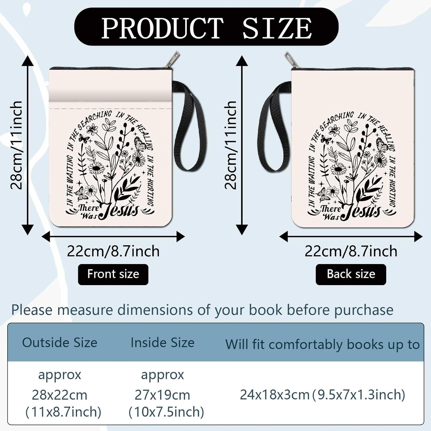 CUSTODIA PER LIBRO A FARFALLA: la copertina del libro ha un motivo elegante e innovativo, che protegge il tuo libro dalla polvere o dalle pagine strappate e piegate, ed è anche un regalo perfetto per gli amanti dei libri. DIMENSIONE: copertina del libro larga circa 22 cm (8,66 pollici), lunga 28 cm (11,02 pollici). Si adatta alla maggior parte dei libri autopubblicati, ai tascabili standard, ai tascabili commerciali di massa e alle normali copertine rigide. Assicurati di misurare il tuo articolo prima dell'acquisto per assicurarti che funzioni per te. TESSUTO LAVABILE: Realizzato in tessuto lavabile, la fodera nera è resistente allo sporco e presenta una cerniera liscia di alta qualità per una maggiore protezione. Sottile e leggero, non rigonfia il tuo libro, può essere facilmente inserito nella valigetta, nello zaino o in un'altra borsa. TASCA EXTRA: questa copertina del libro non solo può contenere libri, la tasca extra sulla manica può anche contenere penne, occhiali, segnalibri, quaderni, cuffie e altri accessori, pratici e belli allo stesso tempo. AMPIO UTILIZZO: Queste custodie per libri possono essere utilizzate per proteggere libri, libri di testo o quaderni e sono adatte a studenti, insegnanti, scrittori, studiosi, librerie o chiunque ami i libri o voglia distinguerli facilmente.