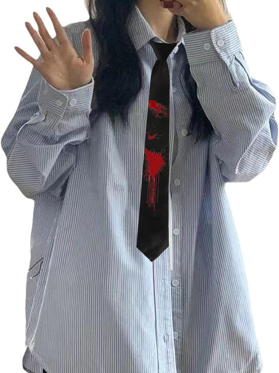 Si distingue con la nostra cravatta alla moda caratterizzata da un design unico con macchie di sangue, per aggiungere un tocco di individualità e stile a qualsiasi outfit. Utilizza un tessuto selezionato, questa cravatta da collo offre un morbido, confortevole ed è facile da mantenere, garantendo che le rughe rimangano libere per un look punk. Ideale per donne o uomini che abbracciano la moda alternativa e cercano di mostrare la loro personalità unica attraverso gli accessori per il collo. Per feste, eventi a tema o riunioni di moda, questa cravatta valorizza i tuoi abiti con il suo fascino distintivo e il suo fascino tagliente. Questa cravatta è un accessorio multiuso che si abbina a vari abiti, grande aggiunta a qualsiasi guardaroba alla moda.