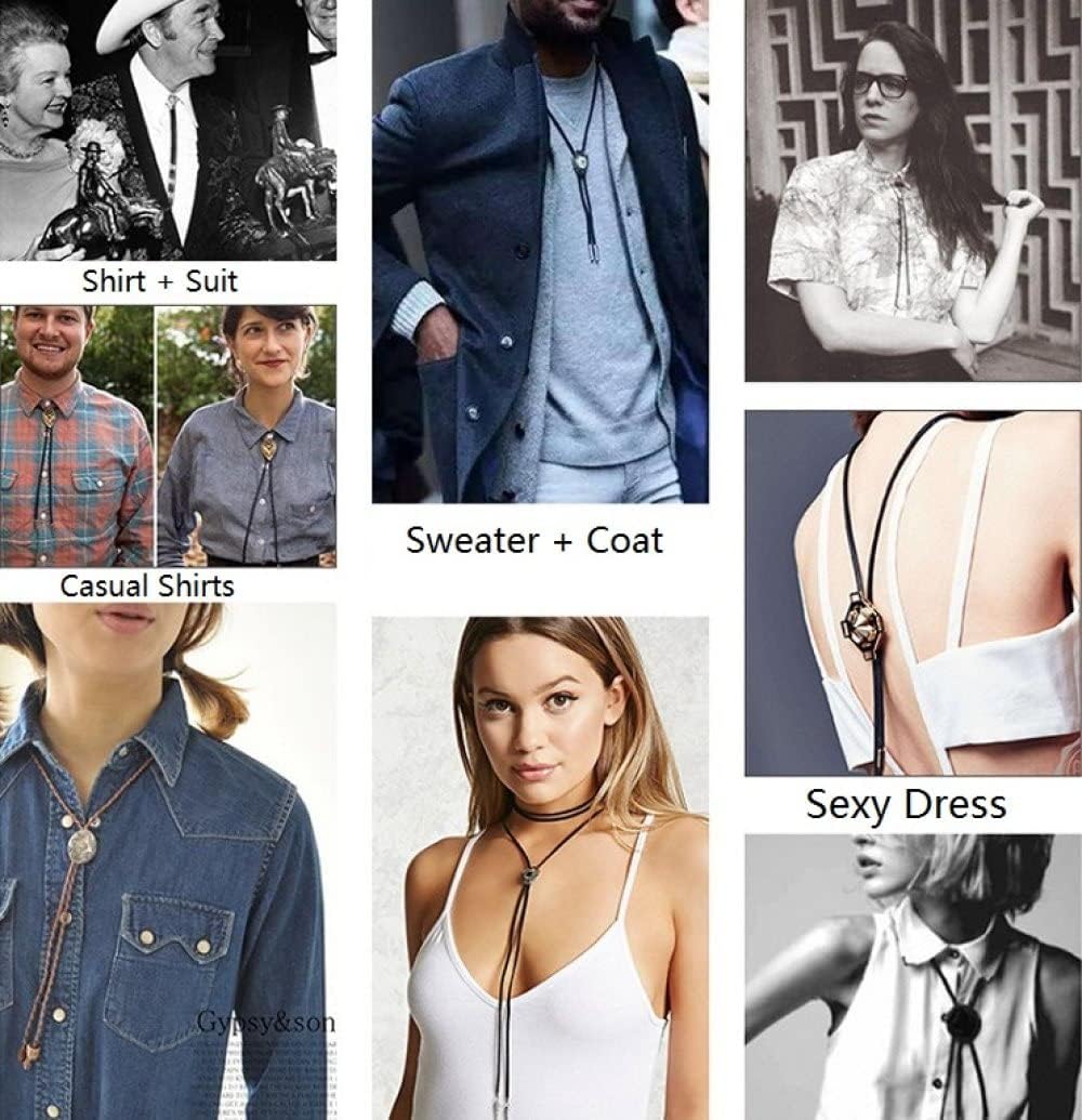 DIMENSIONE FLESSIBILE - La lunghezza totale del nostro cordino in pelle vintage è di 100 cm e il ciondolo creativo è regolabile, la lunghezza può essere regolata in modo flessibile, si adatta a tutti ed è un accessorio di abbigliamento speciale nel tuo guardaroba. Stili e design alla moda per le tue esigenze di combinazione quotidiane. MATERIALE DI ALTA QUALITÀ - La corda per cravatta in stile cowboy occidentale è realizzata in materiale simile alla pelle intrecciato a mano, morbido e resistente. Gli squisiti accessori regolabili sono realizzati in lega antica con superficie altamente lucida e non graffieranno la pelle o i vestiti. Puoi indossarli con sicurezza. CRAVATTA BOLO MODA WESTERN - Originaria del West americano, la cravatta bolo è una cravatta in corda con fibbia. Le cravatte sono di genere neutro e possono essere indossate sia da uomini che da donne. Pertanto sono anche un buon accessorio per le coppie. Non c'è niente di speciale nella cravatta in sé, ma puoi sicuramente vestirla. Pratica, robusta ed elegante: la cravatta bolo è un simbolo della moda e della filosofia occidentale. DESIGN CHIC – Se vuoi la tendenza occidentale dell'hip-hop, questo è per te!! Bellissimi bordi lisci, la corda in pelle è così bella, il caratteristico design creativo in rilievo del testo del palazzo li rende ancora più speciali e unici. Sta bene con un abito e un gilet o semplicemente con una camicia western. Brillantemente ornato e fiorito con verve stilistica. Elementare nella sua semplicità e profondo nella sua autenticità. I colletti in pelle sono molto apprezzati dagli amanti delle cravatte, le cravatte in denim per gli uomini d'affari. I regali jeans da uomo sono collane retrò e set di cravatte, perfetti per feste di compleanno, banchetti, inaugurazioni e lauree, regali ideali per gli uomini.