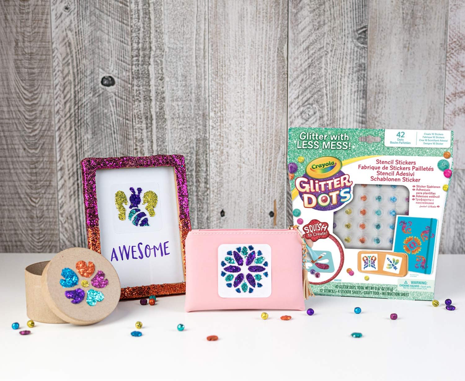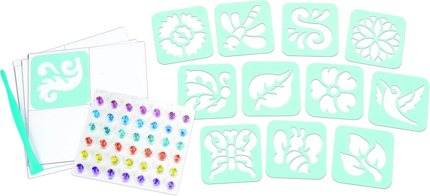 Glitter dots è un materiale modellabile completamente glitterato in palline di 10mm Con questo set puoi creare fino a 16 simpatici adesivi e decorare ciò che suggerisce la fantasia diari, quaderni e tanto altro! Facile e divertente: basta posizionare le mascherine stencil sopra i fogli adesivi e premere le palline nelle aree da riempire per favolosi effetti! La chiusura sigillata di ogni singolo glitter dot permette al materiale di non seccarsi Ottima idea regalo per tutte le occasioni