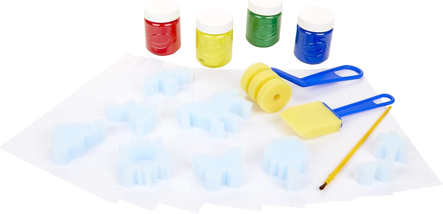 Set creativo per dipingere e colorare con le tempere lavabili Crayola Colori tempera: giallo, rosso, blu, verde Tempere facilmente lavabili, per dipingere in tutta sicurezza Ideale come soluzione regalo Il set contiene: 4 barattolini di tempera lavabile da 59 ml/cad, 9 spugnette, 1 rullo in spugna, 1 maxi pennello in spugna, 1 pennello, 15 fogli bianchi