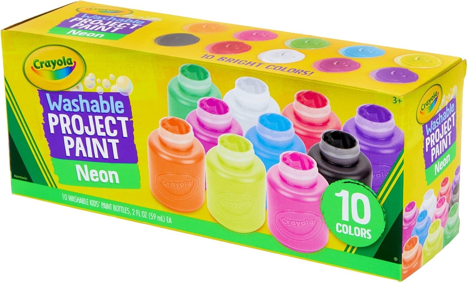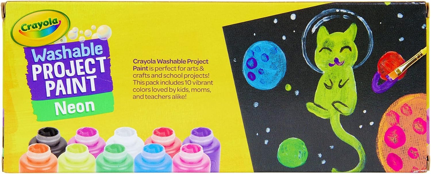 CRAYOLA - Vernice al neon lavabile Aggiungi un vivace look iridescente ai tuoi capolavori creativi Decorare copertine di libri cartelli o poster Utilizzare vari pennelli timbri o spugne per creare motivi e disegni interessanti
