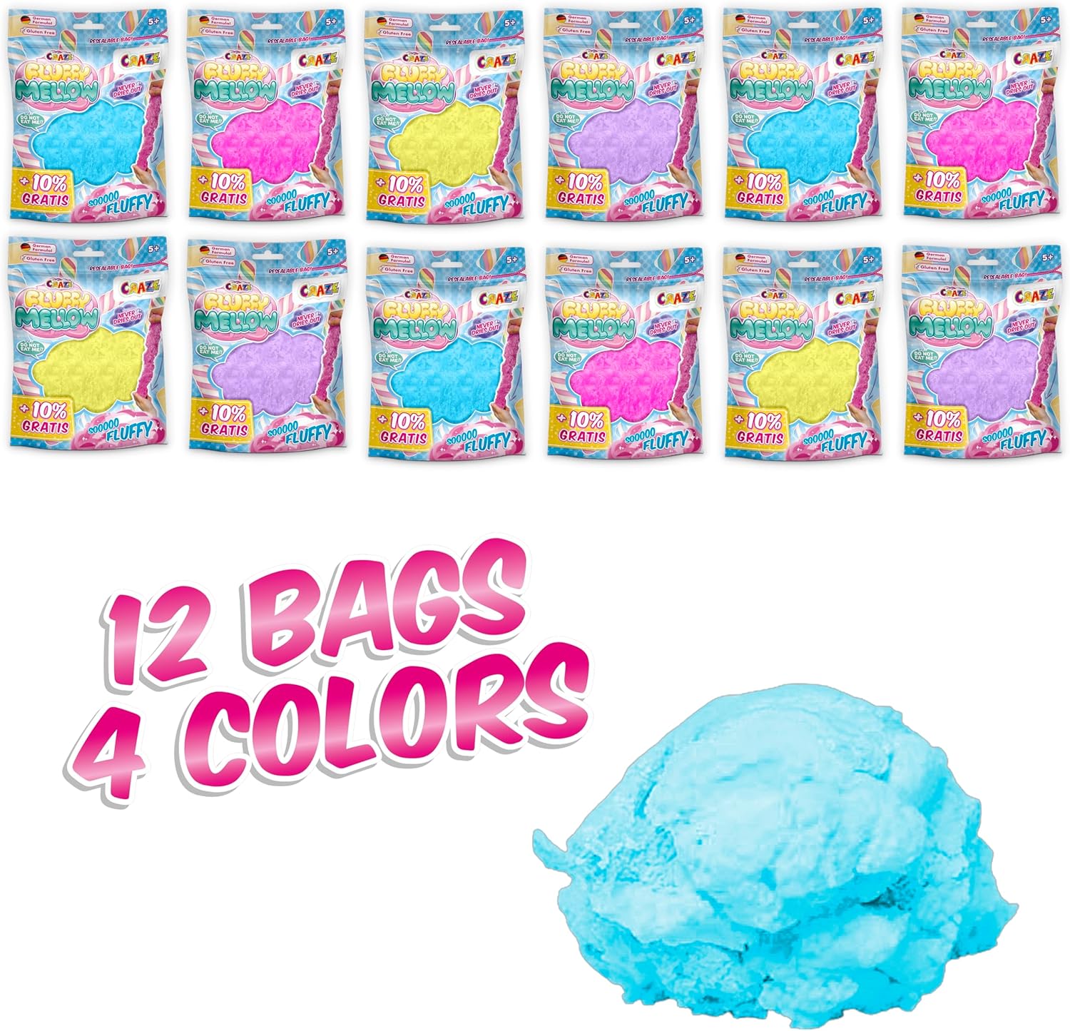 CRAZE Fluffy Mellow è una pasta da modellare soffice, vellutata e morbida che ricorda lo zucchero filato. Questa pasta magica non è né appiccicosa né scivolosa, ma morbida e maneggevole, ideale come antistress. Portala ovunque e divertiti con il nostro Fluffy Mellow! Sviluppa la tua immaginazione: Fluffly Mellow rimbalza, impasta e si allunga all'infinito. Allungalo! Fatelo a pezzi! Impastalo! Falla rimbalzare! Usalo come antistress o arrotolalo in una palla! L'argilla da modellare Fluffy Mellow è un ottimo regalo per tutte le occasioni, aiuta a intrattenere, alleviare lo stress e aiutare i bambini a conoscere diverse texture. Questo slime per ragazze e ragazzi è disponibile in 4 colori diversi e viene fornito in un sacchetto richiudibile. Fluffy Mellow Original di Craze è realizzato con una formula tedesca al 100%, priva di tossine e ingredienti dannosi per i bambini. Sicuro da usare, senza BPA e glutine. Ideale per l'artigianato per i più piccoli. Contenuto: 12 sacchetti di pasta da modellare Fluffy Mellow da 25 g ciascuno confezionati in un sacchetto richiudibile con cerniera, in un assortimento di 4 colori disponibili (blu, rosa, viola e giallo).