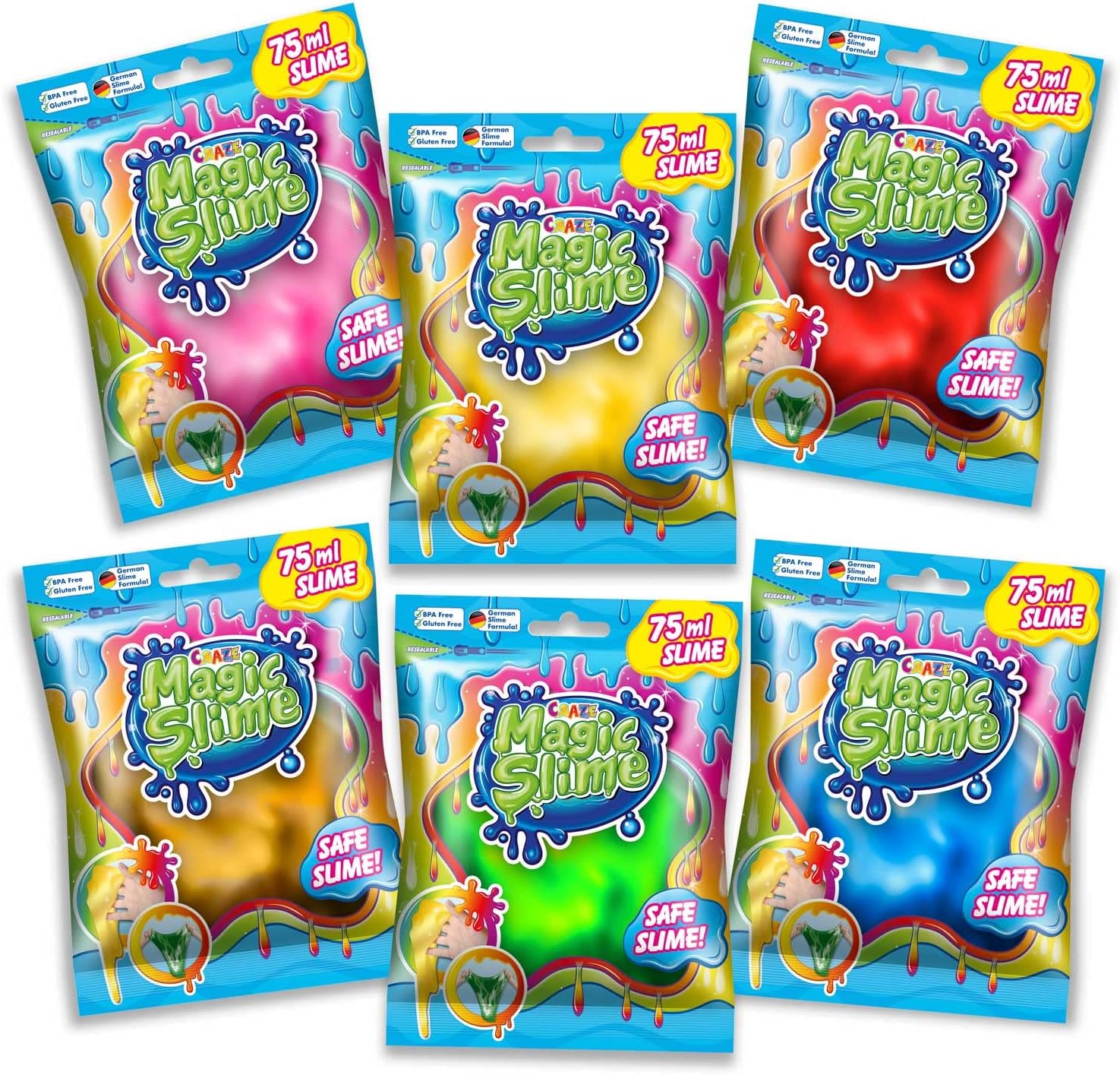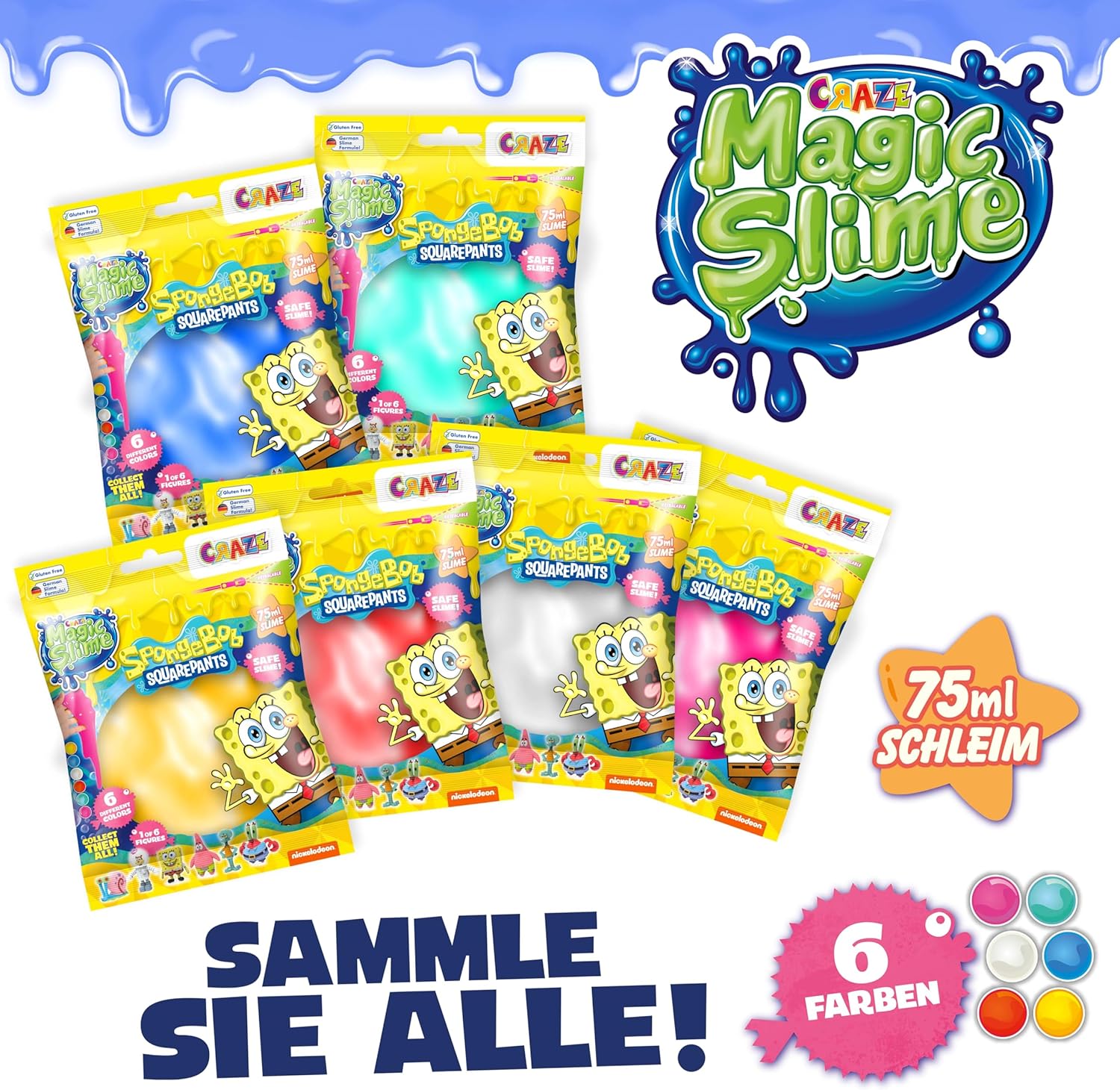 🧽 Divertimento magico con SpongeBob: CRAZE Magic Slime ti trasporta nel mondo di SpongeBob con questo slime colorato in bustina. Ogni confezione include una figura a sorpresa di SpongeBob per rendere il gioco ancora più emozionante. 🌀 Slime originale, elastico e sensoriale: slime per bambini tipo “glibber”, appiccicoso, estensibile e super divertente. Perfetto per bambini e bambine che adorano giocare con texture morbide, rilassanti e creative. 📦 Contenuto della busta sorpresa: ogni busta contiene 75 ml di slime in colori vivaci + 1 figurina sorpresa di SpongeBob. Disponibile in 6 colori diversi, tutti compatibili con il personaggio incluso. 🚗 Ideale da portare ovunque: slime in sacchetto con chiusura a zip riutilizzabile, facile da trasportare e perfetto per giocare a casa, in auto o in vacanza. Mantiene lo slime fresco più a lungo. ✅ Sicuro, inodore e senza residui: formulato in Germania, privo di BPA, glutine e profumo. Uno slime pulito, sicuro e morbido per giocare in tutta tranquillità e stimolare le capacità motorie in modo sensoriale.
