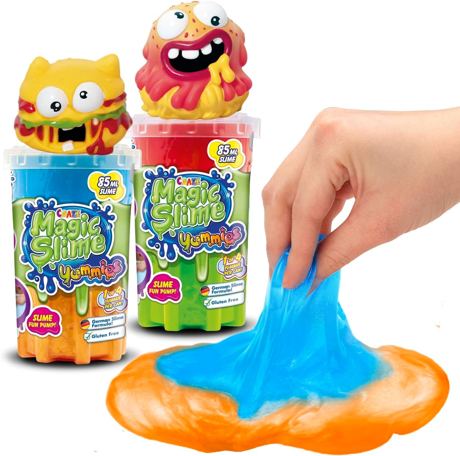 Preparati per l'avventura slime definitiva con l'emozionante MAGIC SLIME - Yummies! Ogni vasetto contiene 85 ml di slime in un mix di 2 colori diversi. Scopri il divertimento appiccicoso con i diversi personaggi aspiranti nascosti in ogni vaso: Burggie, Ghetti, Tortoy e Rabi. CRAZE MAGIC SLIME: questo slime appiccicoso può essere allungato, impastato e modellato all'infinito o semplicemente lasciato sgocciolare! CREATIVO E SENSORIALE: questo slime colorato stimola la creatività e le capacità sensoriali dei bambini. CONTENUTO: 2x slime da 85 ml confezionato in un contenitore a forma di bidone della spazzatura per mantenere la divertente consistenza dello slime più a lungo + 2 figure di slime a ventosa (Tortoy und Rabi) FORMULA: Prodotto secondo lo standard cosmetico europeo, senza conservanti, senza glutine, senza BPA, sicuro per i bambini.