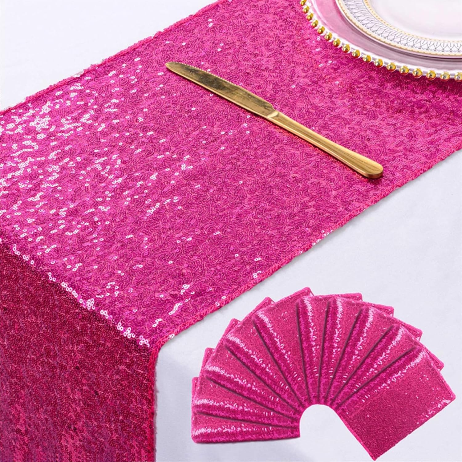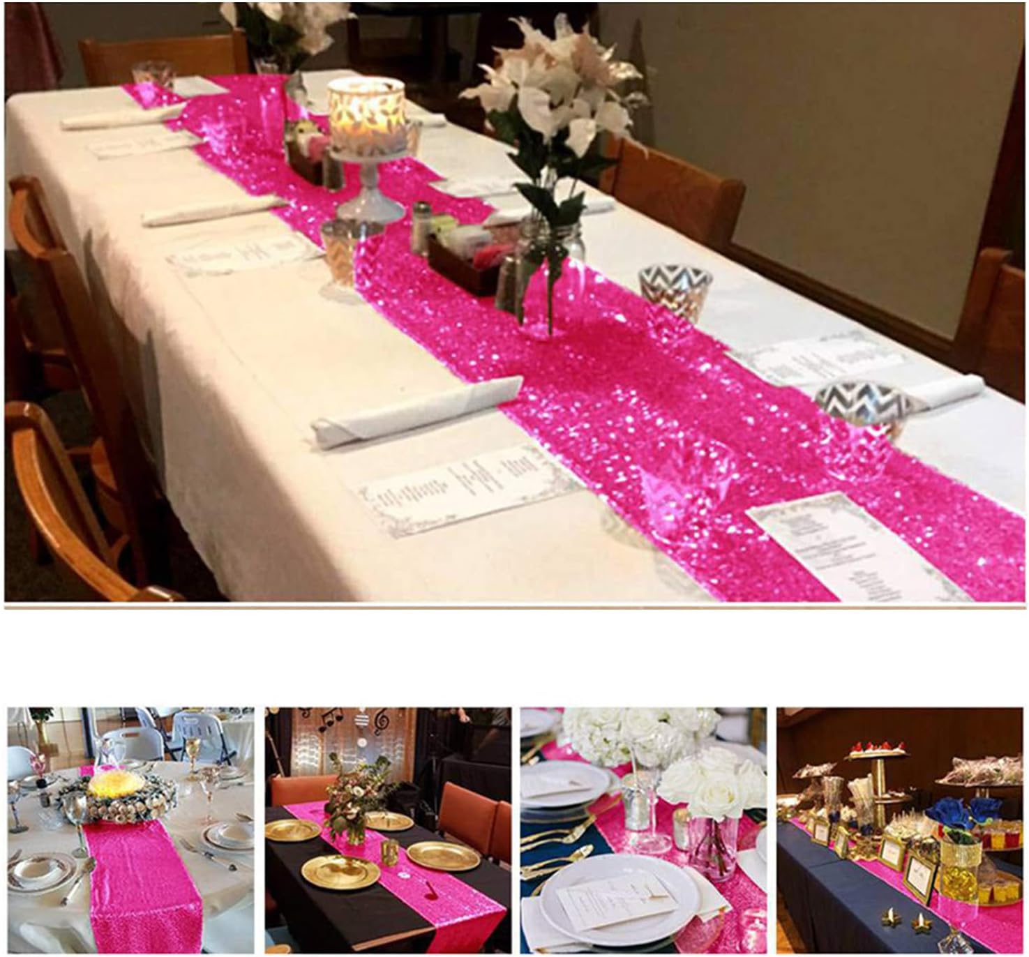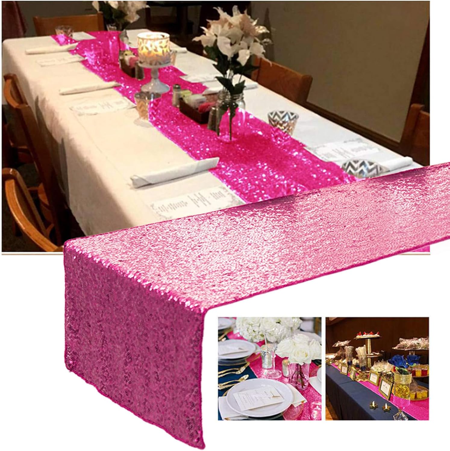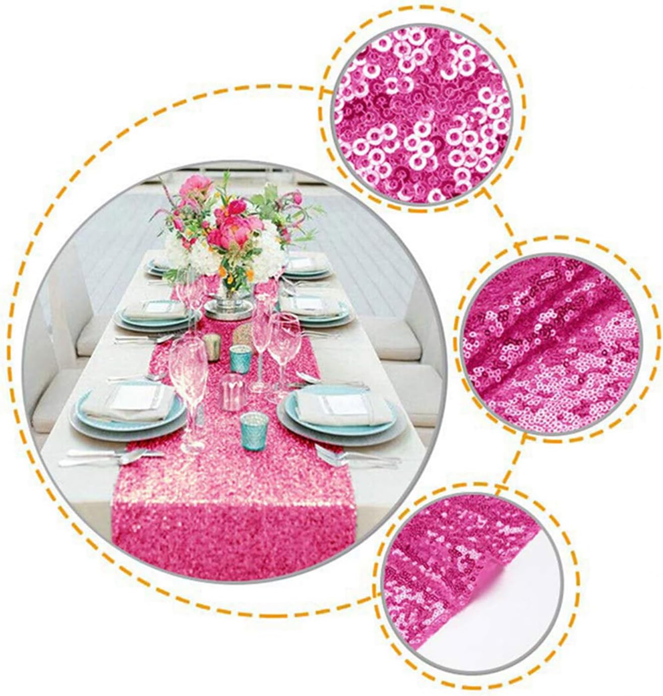durevole e riutilizzabile Nessuna caduta di paillettes: i bordi seghettati evitano la caduta di paillettes Colori positivi: runner da tavola dai colori vivaci assicurano il tuo matrimonio Banchetto di nozze, banchetto di compleanno, banchetto festivo Non sottile, impenetrabile: fitte paillettes sono ricamate sul tessuto