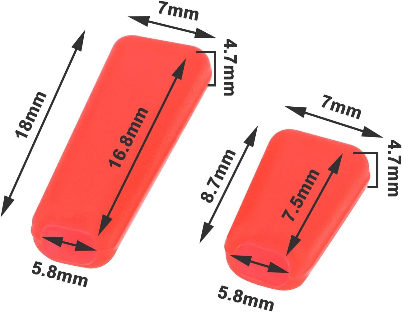 Adatto a una varietà di telecomandi RC, compatibile con Futaba, compatibile con FrSky, compatibile con FlySky, compatibile con RadioLink, compatibile con WFLY, compatibile con Spektrum, ecc. La dimensione è 7x16,8x5,8mm/7x7,5x5,8mm. Si prega di vedere l'immagine per la dimensione specifica. Si prega di controllare attentamente la dimensione. Se è troppo lungo, è possibile utilizzare le forbici per tagliarlo da soli. Il materiale in gomma può fornire un attrito e una sensazione migliori, impedire alla leva di scivolare durante il funzionamento e migliorare la precisione e il comfort durante l'uso. È particolarmente adatto per gli utenti che utilizzano il telecomando RC per un lungo periodo. La leva del telecomando si usura facilmente e accumula polvere durante l'uso frequente; queste coperture protettive possono proteggere efficacemente la leva dall'usura quotidiana, dalla polvere e dall'olio, mantenendola pulita e durevole. Contiene 5 coperture protettive lunghe e corte per garantire l'idoneità alle leve del telecomando con specifiche diverse e garantire una compatibilità più ampia.