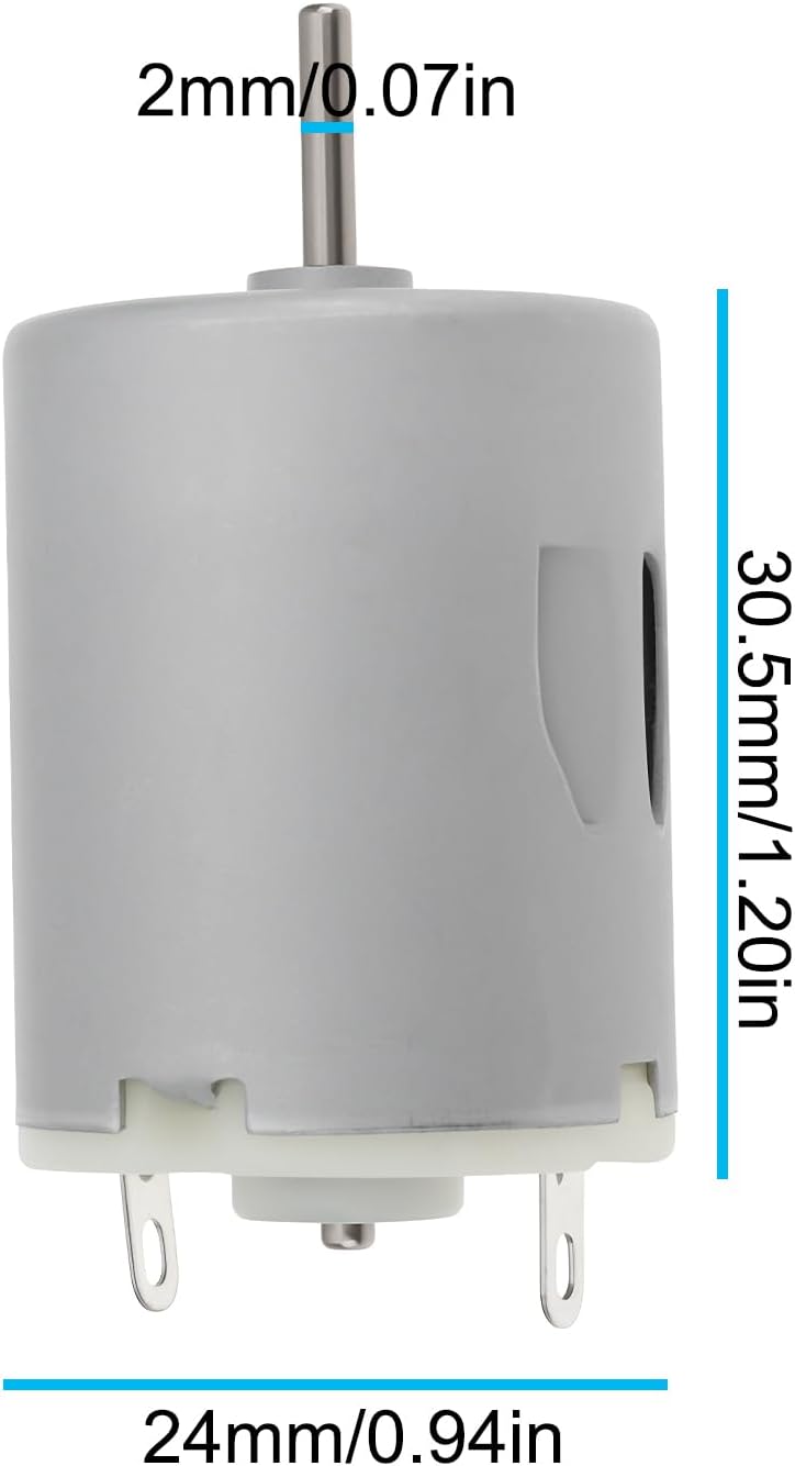 Ampio intervallo di tensione : Funziona tra 3 V e 12 V CC, adattabile a diverse applicazioni fai da te. Design compatto : Le dimensioni ridotte di 30,5 mm x 24 mm consentono una facile integrazione in macchinine e modellini giocattolo. Alta velocità : Fornisce da 5000 a 15000 giri/min per prestazioni elevate nelle macchine leggere. Montaggio : Adatto per progetti di hobbystica come macchinine giocattolo, modelli RC. Progettato per una resa costante e un utilizzo duraturo con piccoli utensili elettrici.