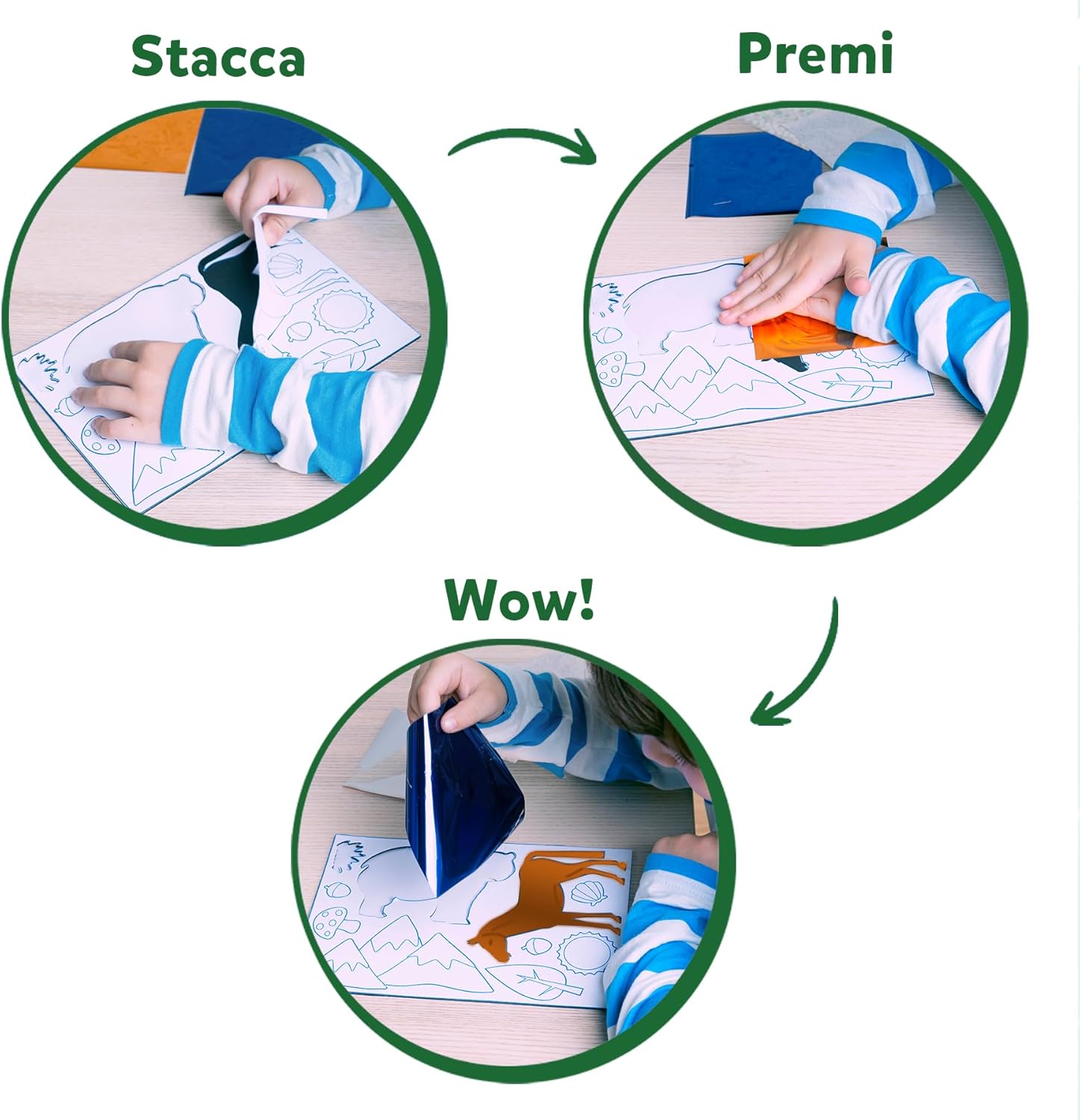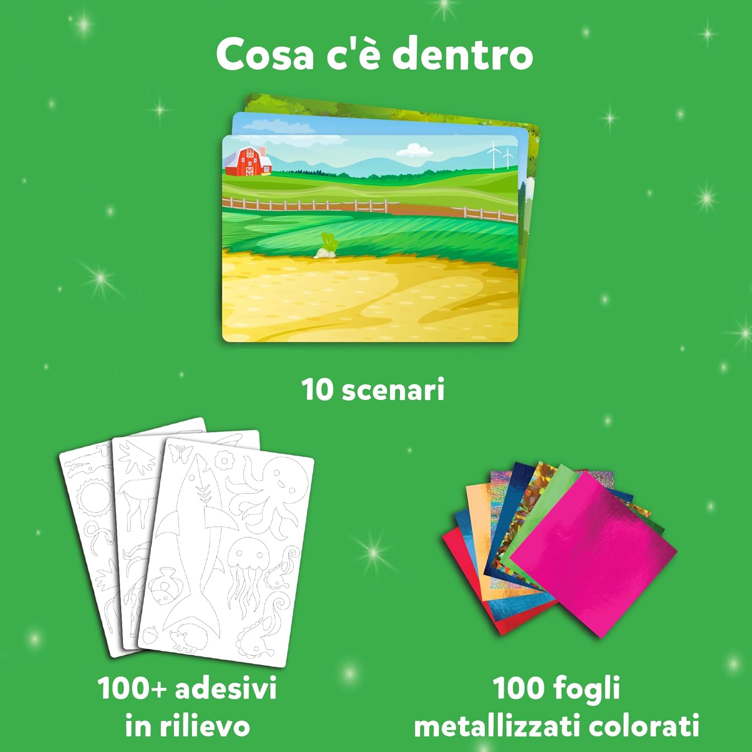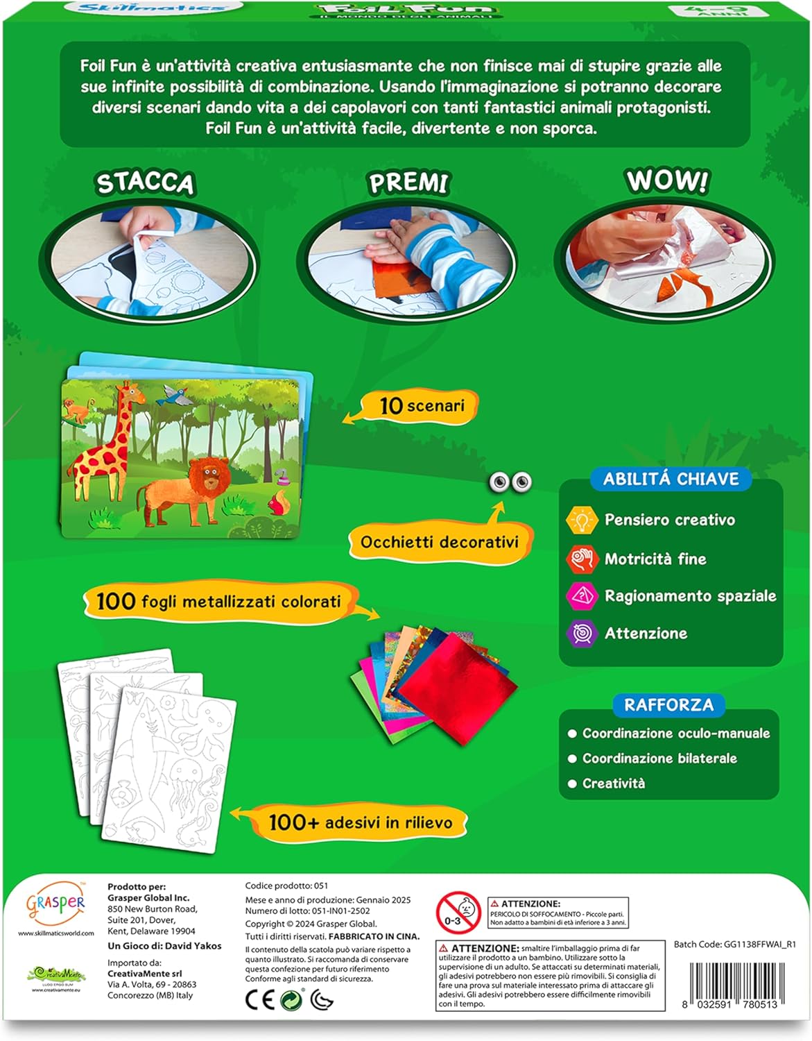 Foil Fun è un’attività creativa entusiasmante che non nisce mai di stupire grazie alle sue in nite possibilità di combinazione. Usando l’immaginazione si potranno decorare diversi scenari dando vita a dei capolavori con tanti protagonisti diversi. Foil Fun è un’attività facile, divertente e non sporca.