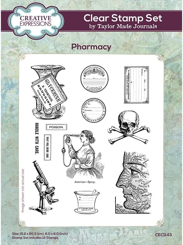12 timbri in fotopolimero compilati da Taylor Made Journals Prodotto nel Regno Unito