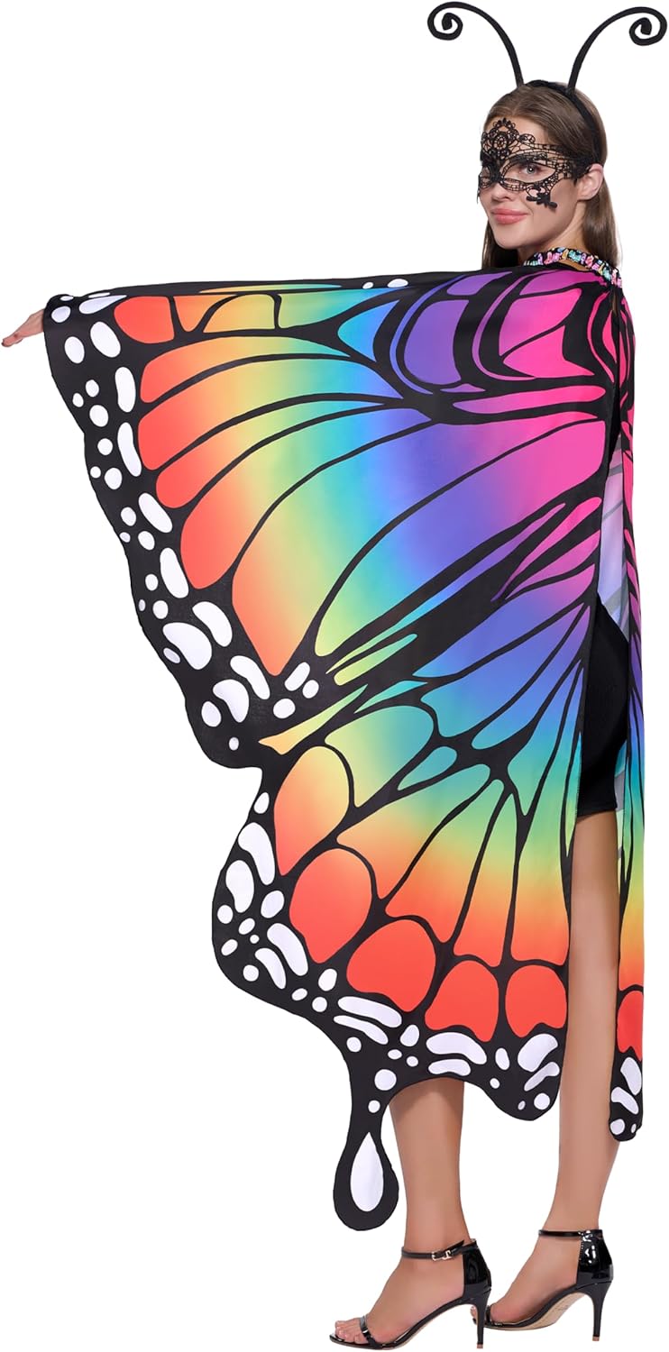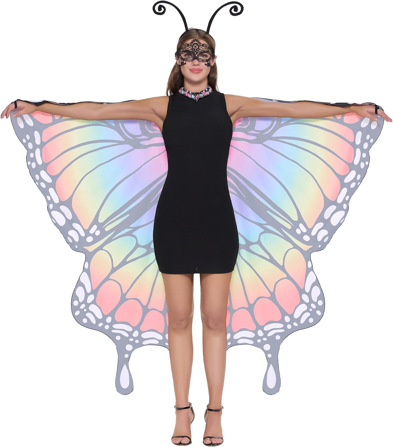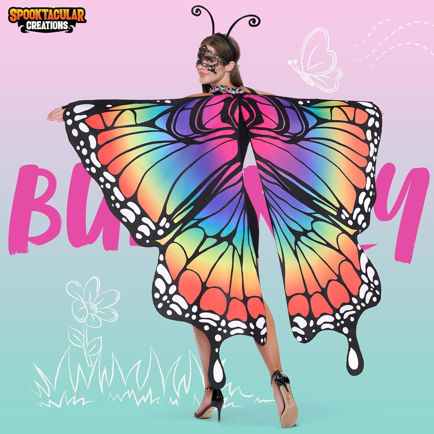 Creazioni Spettrali Sciarpa Mantello con Ali di Farfalla con Maschera in Pizzo e Fascia per Antenna in Velluto per Accessori per Costumi di Halloween per Donne Adulte
