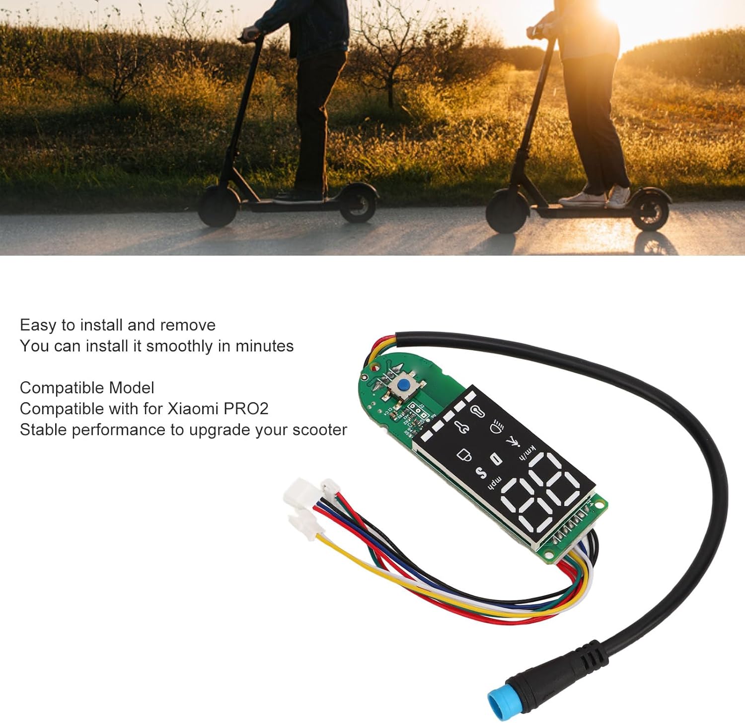 MAGGIORE COMPATIBILITÀ: aggiorna il tuo scooter con questo cruscotto Bt, progettato specificamente per il modello PRO2, garantendo prestazioni stabili e perfetta integrazione. IMPERMEABILE E AFFIDABILE: Realizzato con materiali di alta qualità, questo cruscotto per scooter è impermeabile e resistente all'ossidazione, garantendo prestazioni di lunga durata anche in condizioni atmosferiche difficili. DISPLAY CRISTALLINO: sperimenta il monitoraggio in tempo reale con una visualizzazione chiara della potenza e della velocità del tuo scooter elettrico, consentendo letture facili e accurate durante la guida. SOSTITUZIONE PERFETTA: questa parte di ricambio è ideale per sostituire i cruscotti degli scooter elettrici vecchi o danneggiati. Offre comfort e garantisce la funzionalità continua del tuo scooter. FACILE INSTALLAZIONE: grazie al suo design intuitivo, questa tavola per scooter elettrico è facile da installare e rimuovere, consentendoti di completare senza sforzo il processo di installazione in pochi minuti.