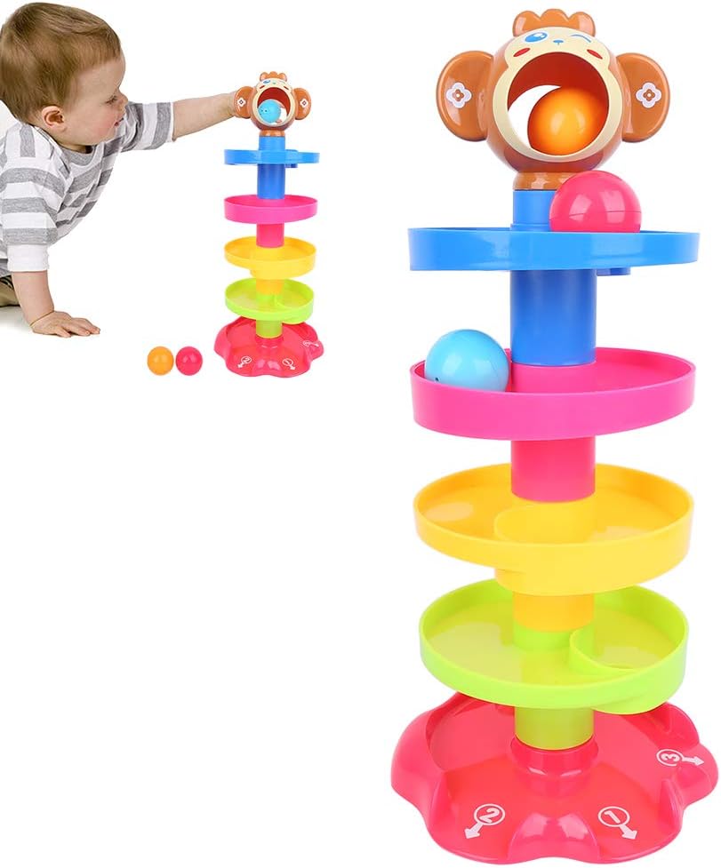 La torre è facile da montare e smontare, facilitando il gioco. Colori vivaci, suoni interattivi e forme complesse migliorano le capacità motorie e le capacità di risoluzione dei problemi. Disegni a 5 strati, include perline colorate e forme per giochi più interattivi. Realizzato in materiale plastico di alta qualità, adatto a bambini di età superiore ai 9 mesi. Per prima cosa posiziona la palla nella buca nella parte superiore e osserva la palla cadere attraverso ogni strato.