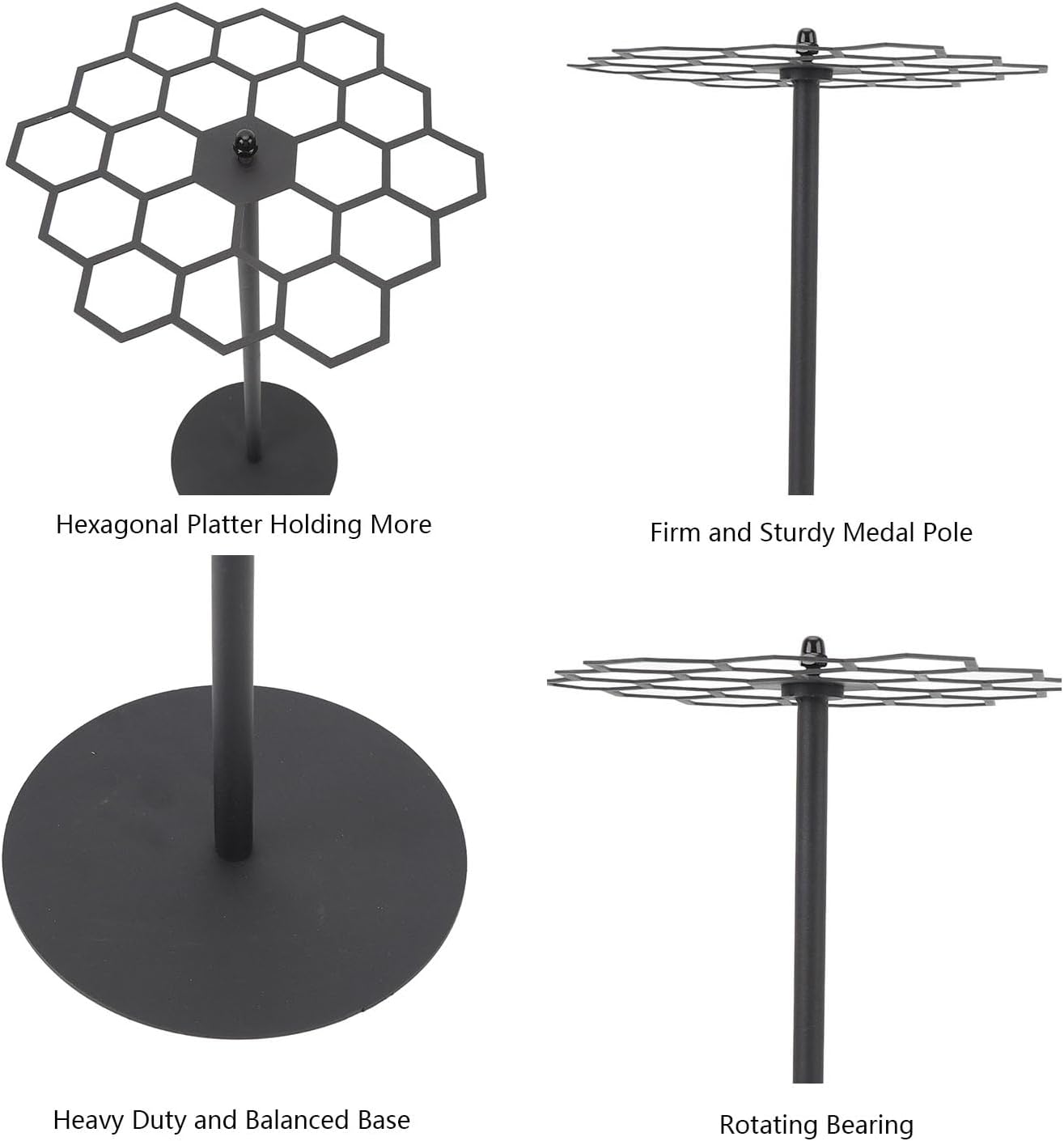 FACILE INSTALLAZIONE: Attaccare il gancio per medaglie è un gioco da ragazzi, basta collegare la robusta asta di metallo alla base stabile e alla piastra esagonale superiore. Non è necessario forare il muro perché puoi posizionarlo direttamente sulla scrivania. PORTA MEDAGLIE MULTIFUNZIONALE: i ganci per medaglie girevoli espongono medaglie di maratona, ginnastica, danza, triathlon, lotta, karate, hockey, pallavolo, baseball e nuoto in modo comodo e ordinato! ESPOSITORE PER MEDAGLIE ROTANTE: mostra con orgoglio le tue medaglie duramente guadagnate su questo espositore per medaglie da tavolo, ispirandoti a ricordare le tue vittorie. Niente più medaglie perse o sparse, organizzale in modo ordinato e celebra i tuoi risultati. ROTAZIONE A 360 GRADI: La base rotonda e stabile con un diametro di 7,1 pollici, insieme a una piastra esagonale (10,2x9,8), può contenere oltre 45 medaglie. Visualizza e accedi facilmente alla tua raccolta da tutte le angolazioni, mostrando i tuoi risultati. COSTRUZIONE PESANTE: Progettato per la stabilità, questo espositore per medaglie è realizzato in metallo robusto ad alta durezza. Ogni medaglia posizionata sullo stand sarà splendidamente esposta, rendendola un ideale per atleti eccezionali.