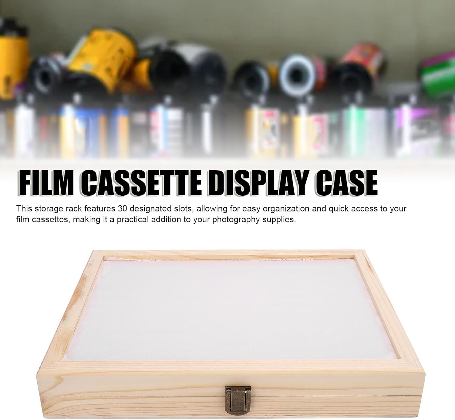[Archiviazione a 30 slot] Mantieni le tue cassette di pellicola ben organizzate con 30 slot designati per un facile accesso. [STILE MINIMALISTA] Il design rustico in legno aggiunge un tocco di fascino a qualsiasi spazio. [COSTRUZIONE ROBUSTA] Realizzata in legno massello di prima qualità, questa vetrina garantisce una protezione duratura. [UTILIZZO VERSATILE] Non per cassette di film, ma può anche riporre piccoli oggetti domestici per comodità. [FACILE ACCESSO] Il semplice meccanismo di bloccaggio consente il recupero rapido delle cassette di pellicola.