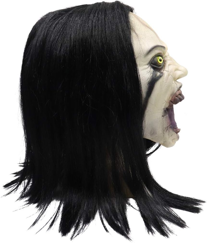 Descrizione prodotto Crying Woman - Maschera da donna Scary Devil Creepy Zombie Ghost, maschera horror, in lattice, testa piena, copricapo demone, per Halloween e feste Avviso di sicurezza non applicabile