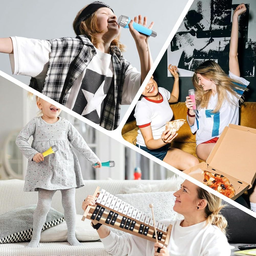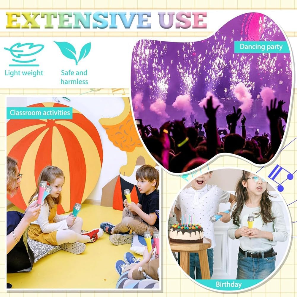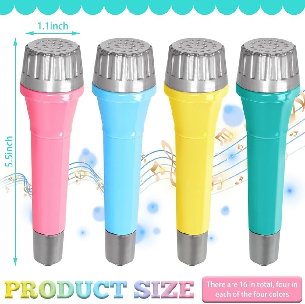 per feste di compleanno: questi microfoni sono perfetti per feste di compleanno, feste danzanti e altre celebrazioni. Aggiungono un tocco divertente e festoso a qualsiasi evento e saranno sicuramente un successo per i bambini che per gli adulti. 4 colori: i microfoni sono disponibili in 4 colori diversi: aggiungono un tocco vivace a qualsiasi evento o festa. Microfoni giocattolo in plastica: ogni confezione contiene 16 microfoni giocattolo, sufficienti per regalo, feste di compleanno, attività in classe e altro ancora. Ideale per : questi microfoni giocattolo sono perfetti per riempire regalo, e regali. Saranno sicuramente un successo per i bambini che per gli adulti. Resistenti e leggeri: realizzati in plastica di alta qualità, i microfoni sono resistenti e leggeri, il che li rende facili da trasportare e con cui giocare.