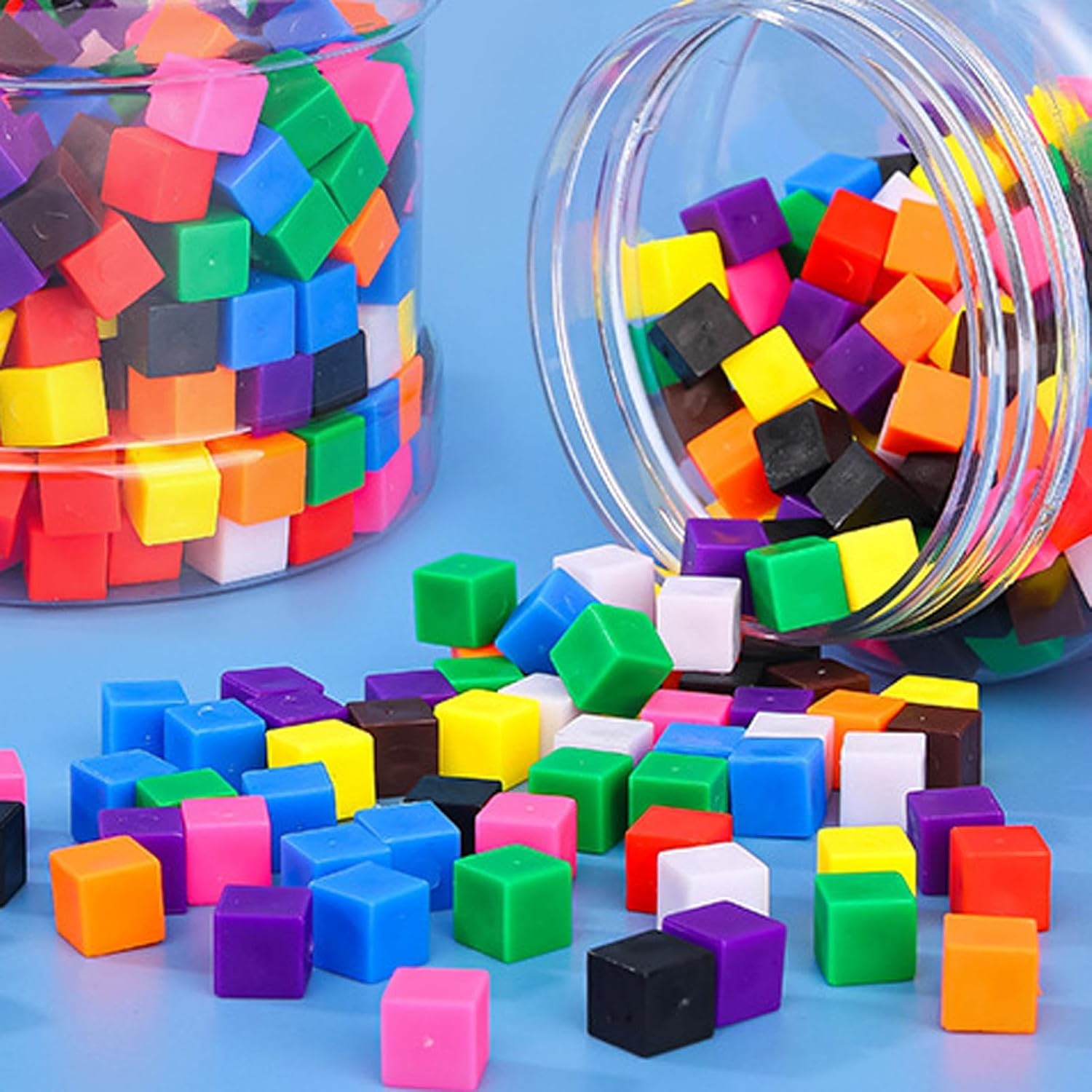 【Materiale】: i conteggio sono realizzati in PP di qualità con bordi lisci (10x10x10 mm per blocco), per le manine dei più piccoli 【Migliora le capacità motorie fini】: i cubi centimetrici aiutano i bambini a esercitarsi ad afferrare, impilare e riconoscere colori e forme confrontando dimensioni e quantità 【Colori vivaci e coinvolgenti】: i cubi dai colori vivaci rendono l'apprendimento divertente migliorando il riconoscimento dei colori e la percezione visiva 【Gioco creativo ed educativo】: Math Cubes incoraggia la costruzione fantasiosa, la consapevolezza spaziale e concetti matematici come addizione e sottrazione 【Miscela di 10 colori brillanti】: include rosso brillante, giallo, verde, , rosa, bianco, arancione, viola, nero per una facile identificazione dei colori e un gioco coinvolgente