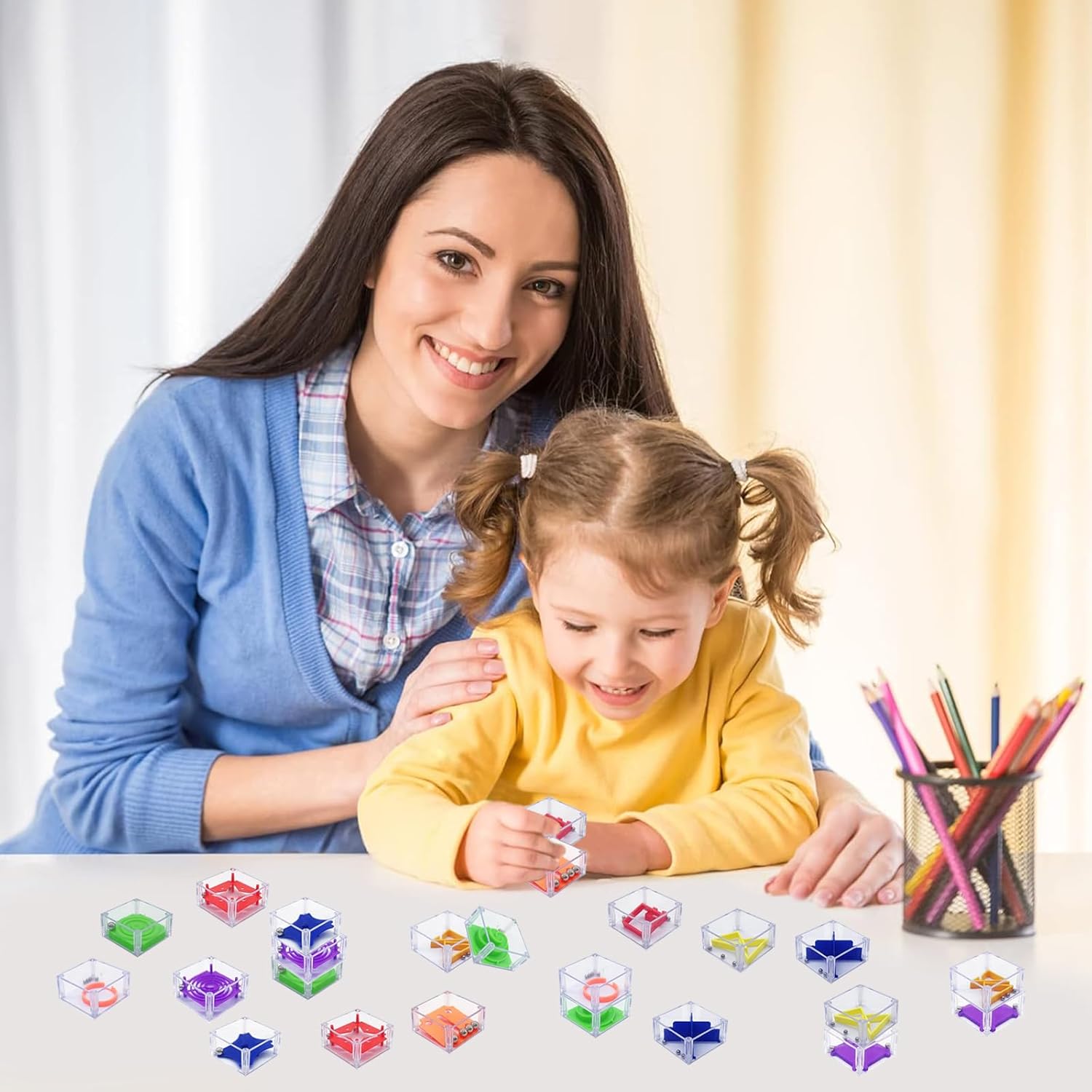 【Design innovativo e coinvolgente】Questo pack di 24 Cubi Rompicapo Bambini presenta una varietà di sfide e desafì per tenere i bambini intrappolati in ore di divertimento. Con forme intricate e colori vivaci, questi cubi stimolano l'attenzione e invitano i piccoli a esplorare e a risolvere enigmi con creatività. 【Materiali sicuri e resistenti】Realizzati in plastica di alta qualità e priva di tossicità, questi cubi sono sicuri per l'uso dai bambini. I bordi levigati e la struttura robusta garantiscono un utilizzo duraturo, anche durante le più intense partite di gioco. 【Valore educativo prezioso】I Giochi di Pazienza per Bambini non sono solo divertenti, ma offrono anche un forte impatto formativo. Aiutano a sviluppare la logica, la coordinazione oculomotoria, la memoria e la capacita` di concentrazione, diventando uno strumento ideale per l'apprendimento attraverso il gioco. 【Idealità per momenti condivisi】Questi cubi rompicapo sono perfetti per creare momenti di convivialità familiare o tra amici. I bambini possono sfidarsi a risolvere i puzzle in gruppo, favorendo la collaborazione e lo sviluppo delle capacità sociali. Inoltre, il pack di 24 cubi è sufficiente per soddisfare più partecipanti contemporaneamente. 【Regalo perfetto per ogni occasione】Sia per un compleanno, Natale o qualsiasi evento speciale, questo pack di Cubi Rompicapo è un regalo accattivante e utile. È un'ottima scelta per soddisfare la curiosità dei bambini e regalare loro ore di divertimento e apprendimento.