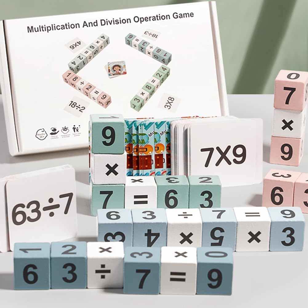 Sviluppare capacità di risoluzione dei problemi: i nostri blocchi di moltiplicazione in legno incoraggiano i bambini a esplorare diverse strategie di soluzione, espandere la loro capacità di pensiero e migliorare le capacità decisionali. Ciò supporta lo sviluppo di capacità di problem solving in modo divertente. Aiuta a sviluppare la presa : i nostri blocchi di moltiplicazione in legno aiutano ad allenare la coordinazione occhio-mano dei bambini nel gioco, migliorano la forza di presa, rafforzano la forza della mano e sono facili da impugnare per le mani dei bambini. Queste caratteristiche supportano lo sviluppo motorio in modo giocoso e favoriscono l'apprendimento. Materiale educativo ecologico: promuovi le abilità matematiche del tuo bambino con i nostri blocchi di conteggio in legno realizzati in materiale ecologico. I blocchi hanno bordi lisci e arrotondati e sono dotati di angoli smussati, per un'esperienza di gioco ininterrotta. Questo giocattolo educativo durevole e sicuro è ideale per avvicinare i numeri e i calcoli ai bambini in modo divertente. Reattività rapida: Prova l'emozione del nostro gioco temporaneo con blocchi di conteggio in legno. Sii il primo a risolvere compiti di matematica che soddisfano i criteri della mappa migliorando la velocità di reazione. Questa esperienza allena decisioni rapide in un ambiente competitivo e aumenta il piacere di apprendimento. Incoraggiare l'apprendimento della matematica: ogni mattoncino è decorato su tutti e sei i lati con numeri unici e simboli matematici, che permettono di comprendere la moltiplicazione e la divisione. Questo pone una solida base per le abilità matematiche e suscita interesse per questa materia. I blocchi aiutano i bambini a esplorare numeri e operazioni attraverso l"apprendimento giocoso. L'uso ripetuto favorisce l'uso nella vita di tutti i giorni e rafforza così il piacere dell'apprendimento della matematica. Questo passaporto