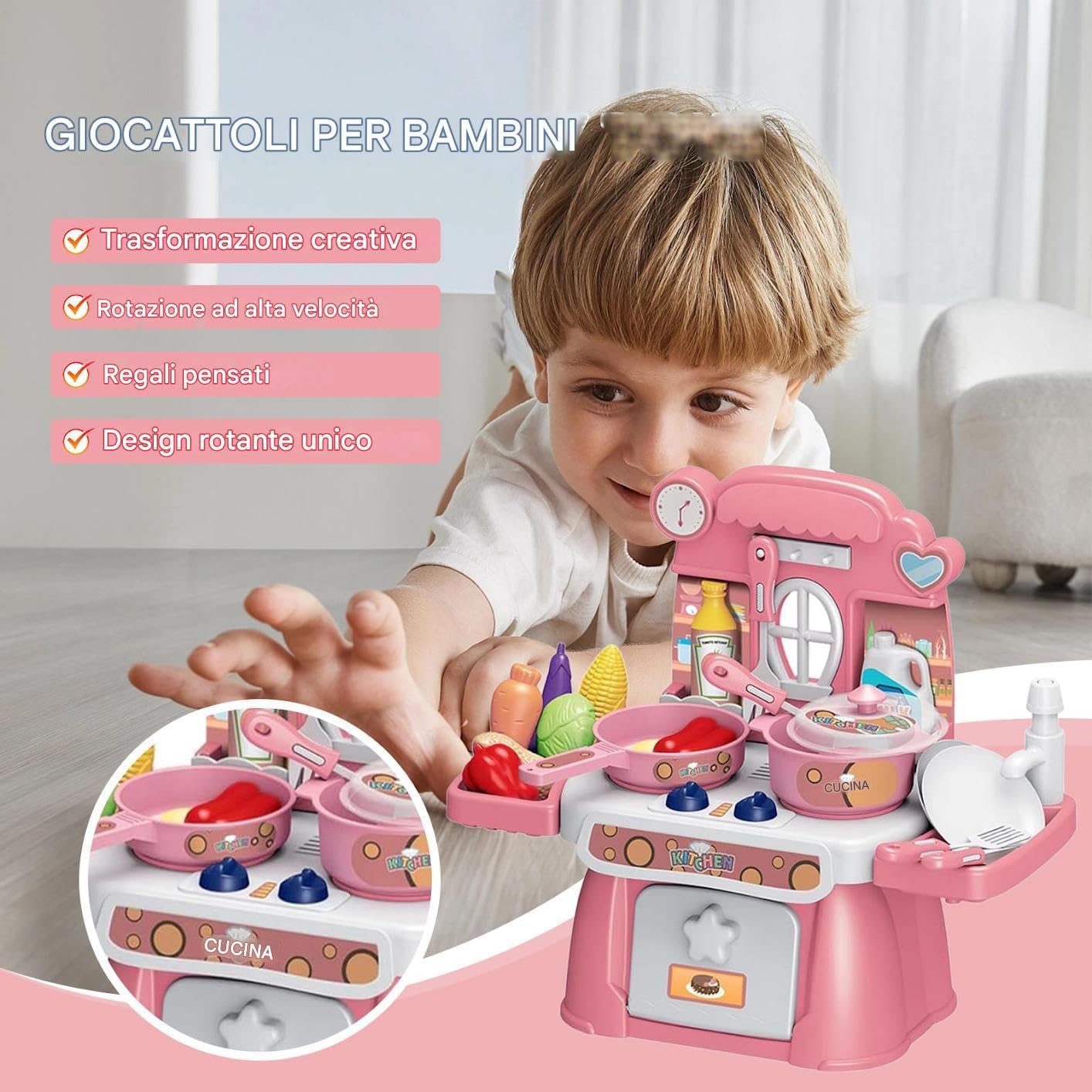 Gioco Coinvolgente: Promuove esplorazione pratica e creatività con una cucina completa, inclusi per ruoli dinamici e momenti di gioco divertenti Design robusto e sicuro: Realizzato con materiali resistenti per garantire sicurezza e longevità, questo gioco cucina resiste alle cadute e presenta bordi arrotondati, favorendo lo sviluppo delle capacità motorie dei bambini durante le attività di gioco Gioco di Ruolo Avvincente: Potenziamento del gioco educativo con luci interattive che mimano elettrodomestici per un divertimento realistico nella finzione Gioco di Lavaggio Creativo: Funzione acqua corrente e lavello giocattolo scenari di lavaggio realistici, promuovendo esperienze di gioco interattive e coinvolgenti per la giovane immaginazione Avventure Gioco Simbolico: Design ecologico innovativo per questa cucina giocattolo, ispira sogni culinari e incoraggia attività di ruolo immersive. Regalo creativo che stimola il pensiero immaginativo coinvolgendo i bambini in avventure ludiche educative