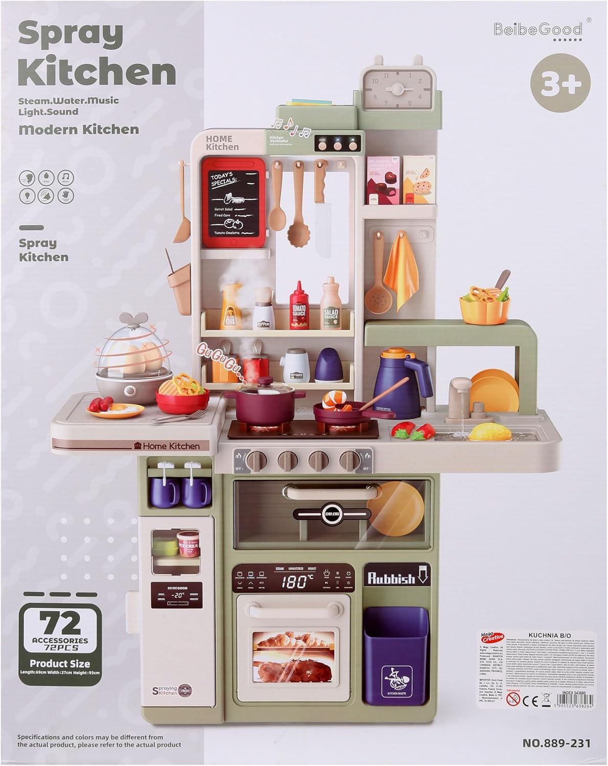 La cucina per bambini MEGA CREATIVE è un set di giocattoli che include un numero impressionante di accessori: fino a 72 pezzi. Questo set è ideale per i bambini di età superiore a 3 anni poiché consente la cucina interattiva. La cucina è dotata di effetti sonori e luminosi, che rendono il gioco ancora più realistico e coinvolgente. Il set comprende forno, lavello, frigorifero e molto altro per sviluppare la fantasia e le capacità motorie del bambino.