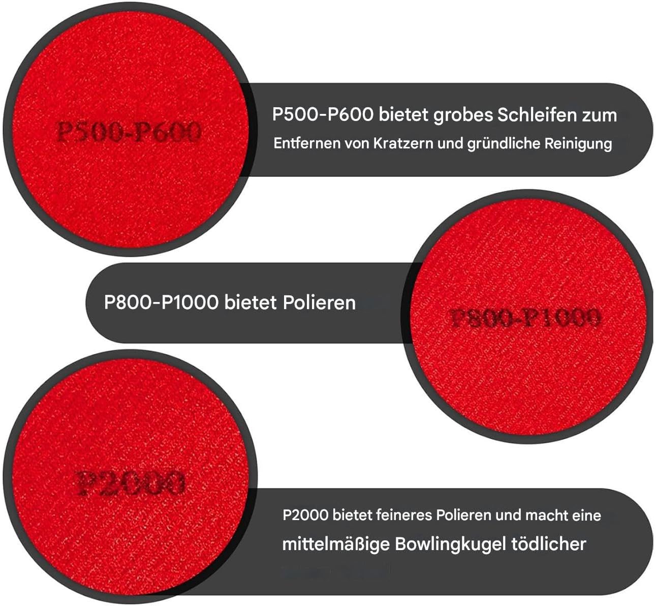 Funzionalità di finitura uniforme: aumenta l'efficienza e i risultati grazie alle superfici di contatto più ampie e all'azione di lucidatura uniforme, garantendo così l'idoneità a tutti gli utenti che cercano prestazioni affidabili nella manutenzione delle loro sfere da bowling Rimozione del sudore e dello sporco: il materiale in microfibra assorbe efficacemente il sudore e lo sporco e mantiene la palla da bowling lucida e asciutta, garantendo al contempo una facile pulizia e riutilizzo per prestazioni costanti Doppia funzione che consente di risparmiare tempo: la combinazione di funzioni doppie in un unico strumento riduce i passaggi di pulizia attraverso operazioni di levigatura e pulizia simultanee e aumenta la produttività grazie a un approccio di manutenzione ottimizzato e ben studiato Regali di Natale ideali: questi dischi abrasivi progettati come kit di manutenzione completo sono pratici e ben organizzati. Offrono ai giocatori di bowling una soluzione ideale e allo stesso tempo dimostrano cura e supporto attraverso una presentazione premurosa per ogni occasione Ideale per la cura della palla: con un sistema di levigatura progressivo a grana grossa, media e fine, questo prodotto garantisce una raffinatezza completa per la cura perfetta delle superfici della palla da bowling