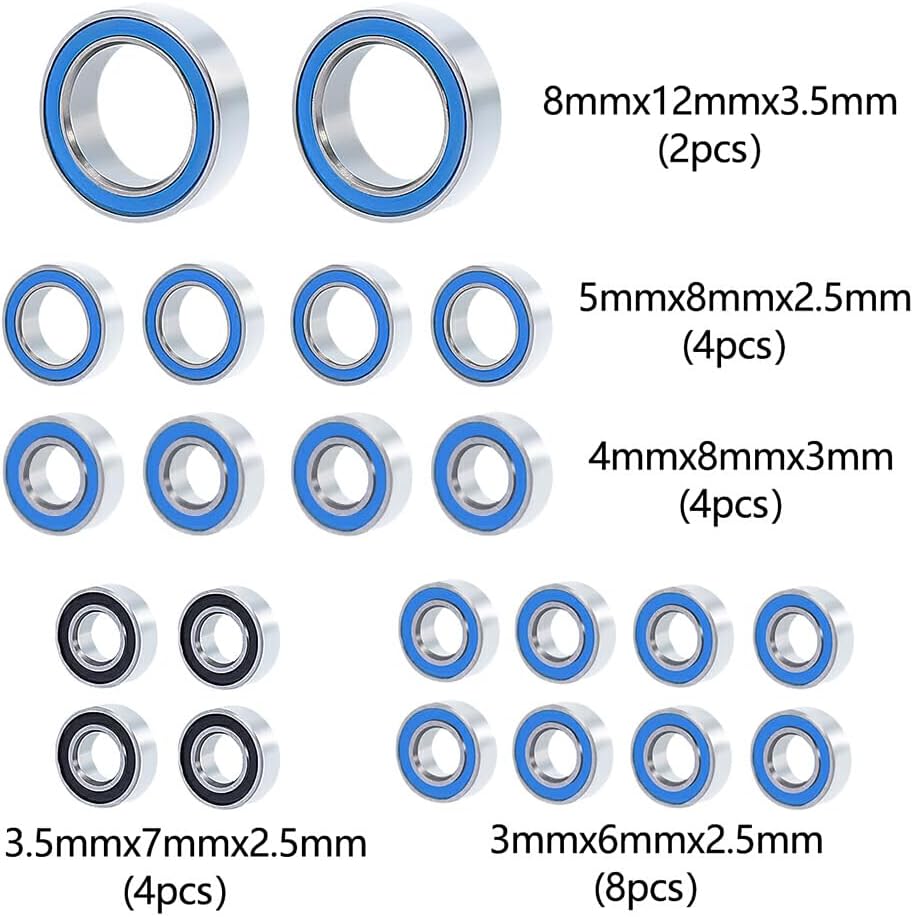 【Compatibilità】: accessorio per auto RC in acciaio adatto per modelli 1/18 trx4m, con altissima compatibilità 【Caratteristiche】: I cuscinetti a sfere RC riducono l'attrito per una minore resistenza al rotolamento, il che significa maggiore velocità e tempi di funzionamento più lunghi 【Cosa ottieni】: Incluso cuscinetto*22 【Qualità】: migliora efficacemente le prestazioni di guida stabili e flessibili della tua auto. Rafforzare la rigidità della carrozzeria del veicolo 【Peso leggero】: non aumenterà il carico extra della tua auto