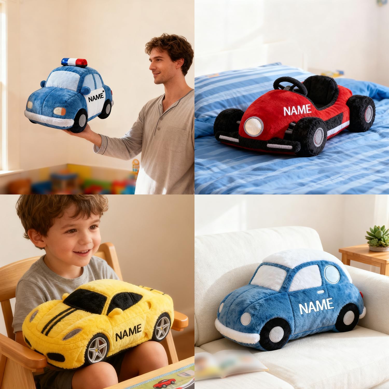 Nota: il cuscino è stampato in 2D, non con effetti 3D, incluso il pillovcore. Passaggi di personalizzazione: seleziona il colore → Fai clic su "Personalizza ora" sul lato destro della pagina, scrivi il nome. Perfetto per il regalo di Natale 2025. Dimensioni ideali da abbracciare o coccolare: il cuscino in peluche ha un diametro di circa 35,6-50,8 cm, è di dimensioni adatte per abbracciare o coccolare; ma facile da trasportare e mostrare con orgoglio per i bambini. Inoltre, è molto comodo da portare in giro quando campeggio e viaggi, picnic e molto altro ancora Realistico e funzionale: questo cuscino imbottito in peluche per auto è realizzato in tessuto super morbido e delicato sulla pelle, per un tocco migliore. Molto morbido. Con la squisita fattura, il cuscino in peluche decorativo per auto ha un aspetto realistico di simulazione 3D, dall'aspetto fresco e distintivo Utile e decorativo: l'arredamento della stanza a tema veicolo dei cartoni animati può ampiamente servire come cuscino per il corpo, cuscino per il collo, cuscino per pisolino, cuscino per la vita, cuscino da letto, cuscino per dormire, cuscino da abbracciare durante la lettura, guardare la TV, studiare e fare un pisolino in modo da ridurre la fatica, e può anche portare un effetto visivo fresco a casa, ufficio, studio e molto altro ancora Regalo perfetto: il cuscino imbottito in peluche per auto non è solo un cuscino decorativo unico e divertente, ma anche una scelta regalo perfetta per Natale, Ringraziamento, Pasqua e compleanno. Questi simpatici cuscini decorativi in peluche per auto sono estetici e pratici. Ottimo anche per leggere a letto e guardare la TV; da utilizzare come cuscino per il divano.