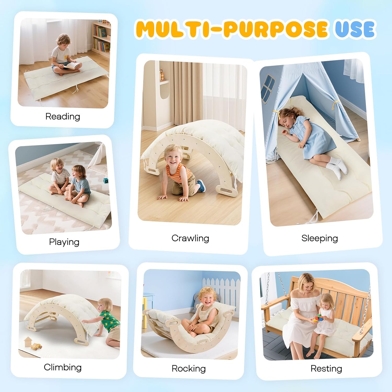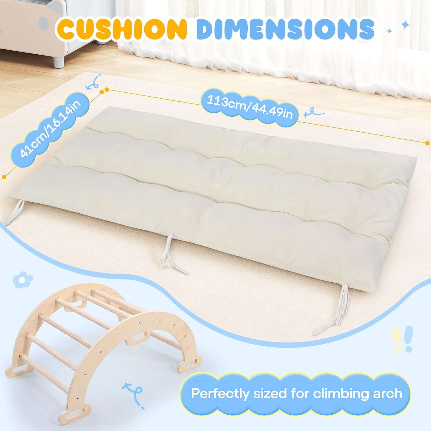 Include cuscino e federa: cuscino per arco da arrampicata, cuscino per sedia a dondolo Montessori, cuscino da pavimento ideale per pisolini, pigiama party e lettura. Imbottitura per cuscino - FATTO A MANO: comodo cuscino da arrampicata, tutti i nostri cuscini sono accuratamente realizzati a mano. MORBIDO E SPAZIOSO: comodo cuscino per arco da arrampicata, cuscino da pavimento per bambini, realizzato con un'imbottitura in cotone super morbido e decorato con i simpatici motivi del tuo bambino. Cuscino Montessori per sedia a dondolo: questo cuscino ad arco da arrampicata è adatto a tutte le età, che tu sia un bambino, un bambino, un adolescente o un adulto, ed è un regalo carino. Morbido e delicato sulla pelle: comodo cuscino da arrampicata, imbottito con cotone di pino ad alta densità, soffice, spesso e di supporto, con uno spessore di 10 cm. Posizionalo sulla sedia a dondolo ad arco da arrampicata: il morbido cotone di pino manterrà i bambini comodi e la sedia a dondolo ad arco in legno non li ferirà. (Si prega di notare che la sedia a dondolo ad arco non è inclusa in questo prodotto)