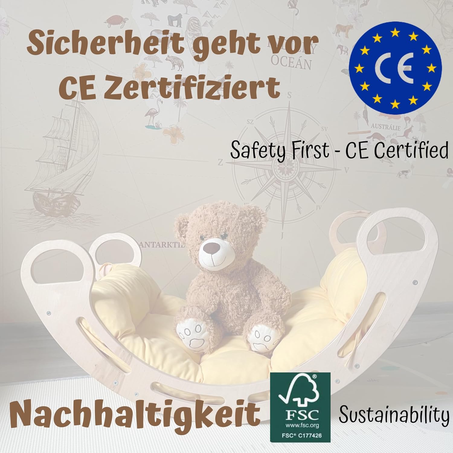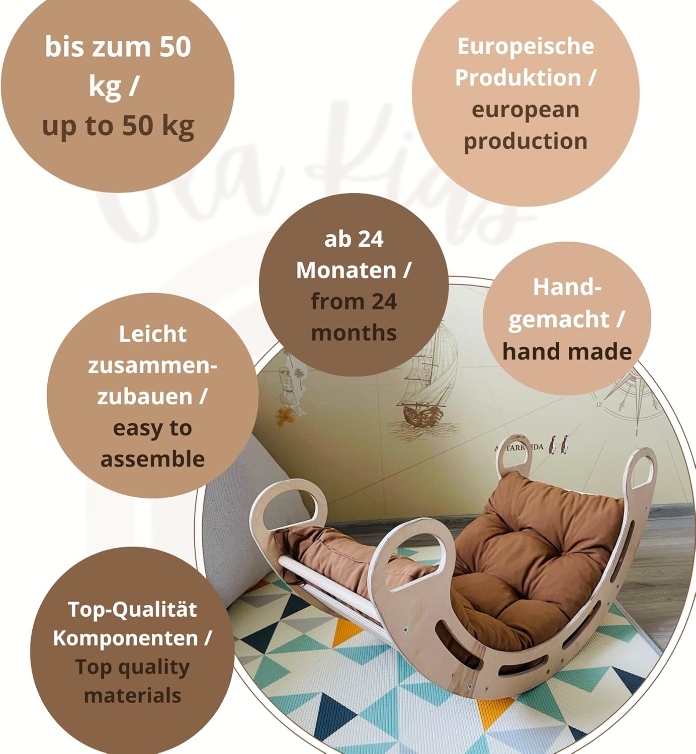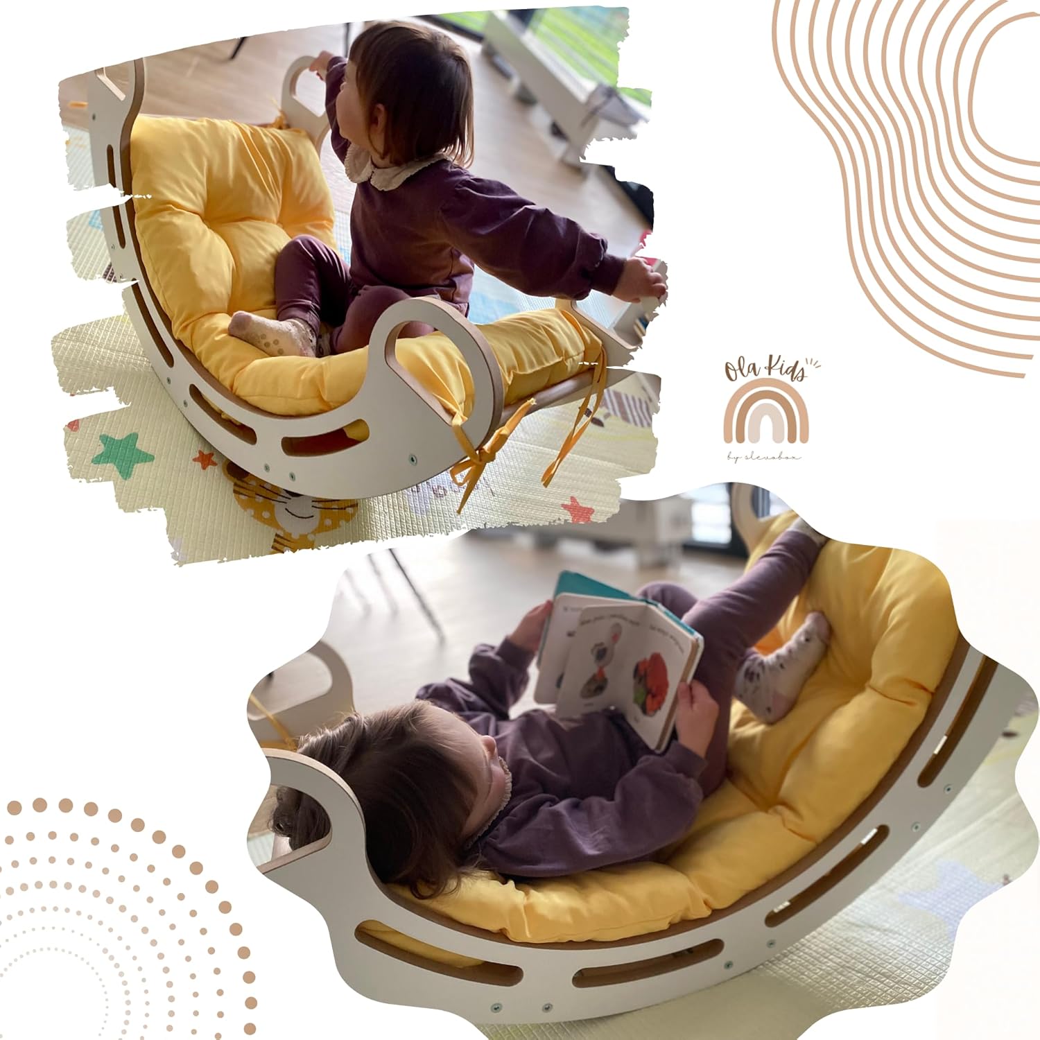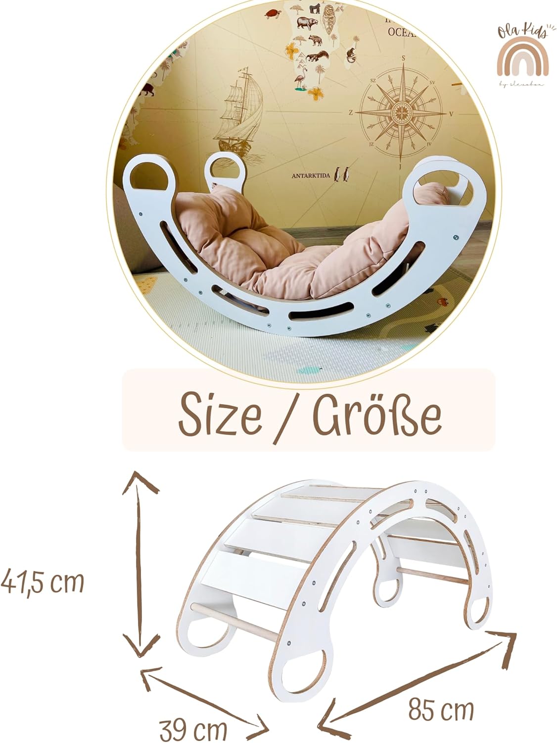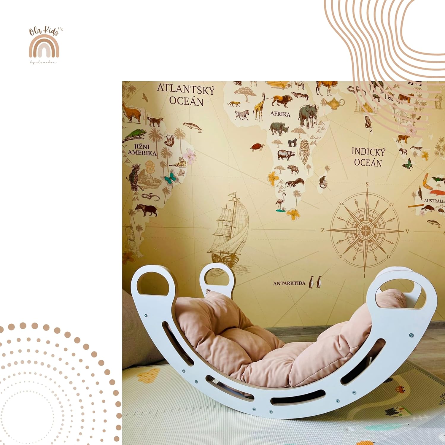 Ritrovare la calma giocando - Il morbido cuscino imbottito invita i bambini a partire dal primo anno di vita a riposarsi, rilassarsi e sognare. Dopo il gioco, offre un rifugio accogliente che trasmette sicurezza. Comfort e funzionalità - Grazie alle dimensioni e alla forma ottimali, il cuscino si adatta perfettamente all’arco da arrampicata, offrendo una superficie comoda per dondolarsi, sdraiarsi o leggere. L’imbottitura stabile garantisce un supporto sicuro. Sviluppo secondo il metodo Montessori - Il cuscino supporta il gioco autonomo ispirato al metodo Montessori. Incoraggia i bambini a percepire consapevolmente l’ambiente circostante, a sentire il proprio corpo e a gestire in modo indipendente i momenti di calma. Uso versatile - Che sia come superficie morbida per sdraiarsi, angolo per la lettura o complemento al gioco da arrampicata indoor, il cuscino si presta a molteplici usi, favorendo sia il gioco creativo che il relax. Dettagli del prodotto in sintesi - Dimensioni: 85 x 39 x 10 cm | Materiale: nucleo in morbida schiuma con rivestimento resistente | Adatto ad archi da arrampicata lunghi 85 cm | Facile da pulire e realizzato con materiali sicuri per i bambini.