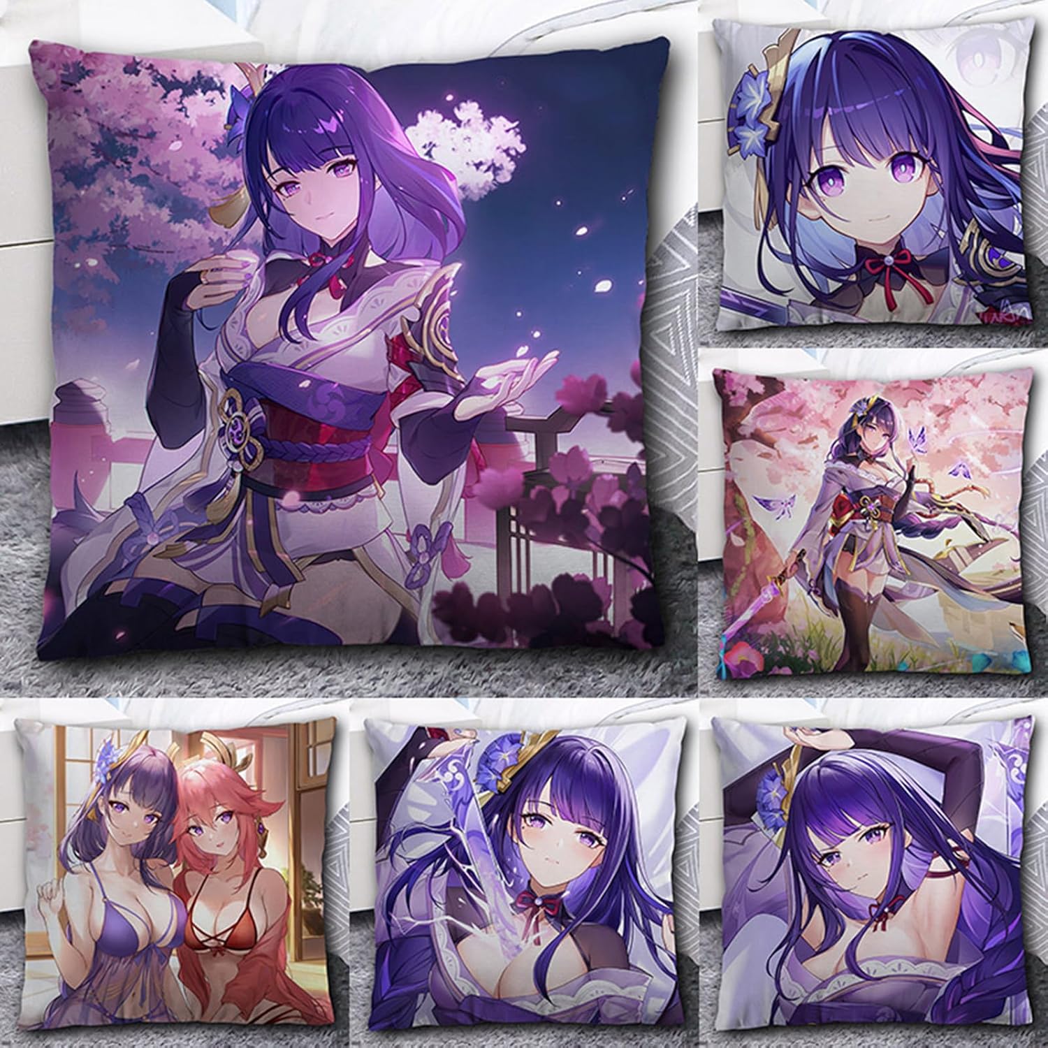 Cuscino Periferico Personaggio del Gioco Cuscino per Raiden Shogun 50x50cm, Morbido Divano Cuscino Decorativo, per Gli Appassionati di Giochi,17