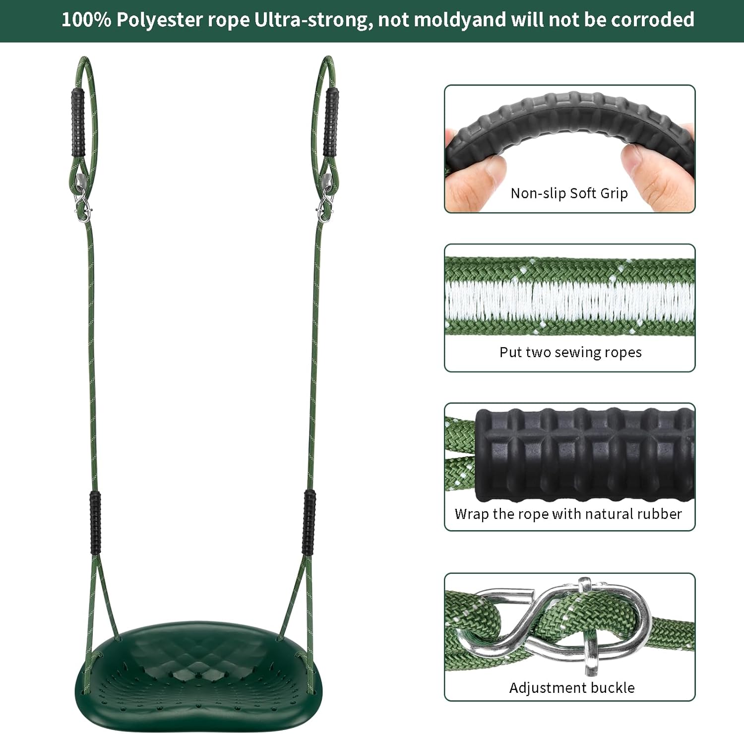Facile da installare: non sono necessari attrezzi. È possibile utilizzarlo direttamente, eliminando le fasi di installazione, basta trovare il luogo in cui si desidera appendere il set altalena, poi appenderlo, legare la corda per fissarlo e otterrete un perfetto set di altalene!