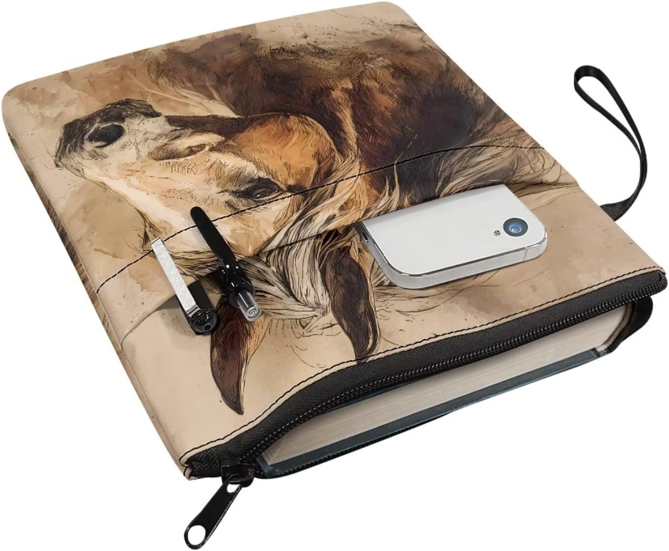 Leggero e perfettamente portatile (22 x 29 cm): progettato per un trasporto senza sforzo. Il suo profilo sottile e pieghevole scivola facilmente in zaini, borse, valigette o bagagli. Porta i tuoi libri protetti ovunque senza aggiungere ingombro Protezione garantita del libro: proteggi i tuoi amati libri, quaderni e libri di testo da sporco, graffi, pieghe e usura quotidiana. Per mantenerli incontaminati come nuovi, sia che si tratti di pendolarismo, viaggi o in borsa Materiale: questa custodia per libri con cerniera per gli amanti dei libri è realizzata in poliestere e cerniera liscia di alta qualità, non cadrà, non si deforma o si restringe facilmente, leggera, durevole, resistente all'usura e può fornire un servizio a lungo termine Comoda tasca frontale: rimani organizzato con la pratica tasca frontale! Dimensioni perfette per penne, matite, segnalibri, foglietti adesivi, piccoli diari, occhiali o persino auricolari, tutto ciò di cui hai bisogno per leggere o studiare a portata di mano Design elegante e regalo ideale: esprimiti con motivi vivaci come stampa mucca, girasole, farfalla, palla, bandiera americana, galassia e animali. Un regalo pratico e premuroso per studenti, viaggiatori, amanti dei libri e professionisti
