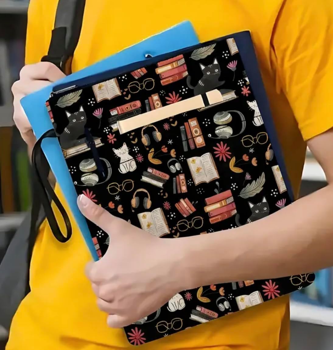 Custodia a libro a tema gatto.