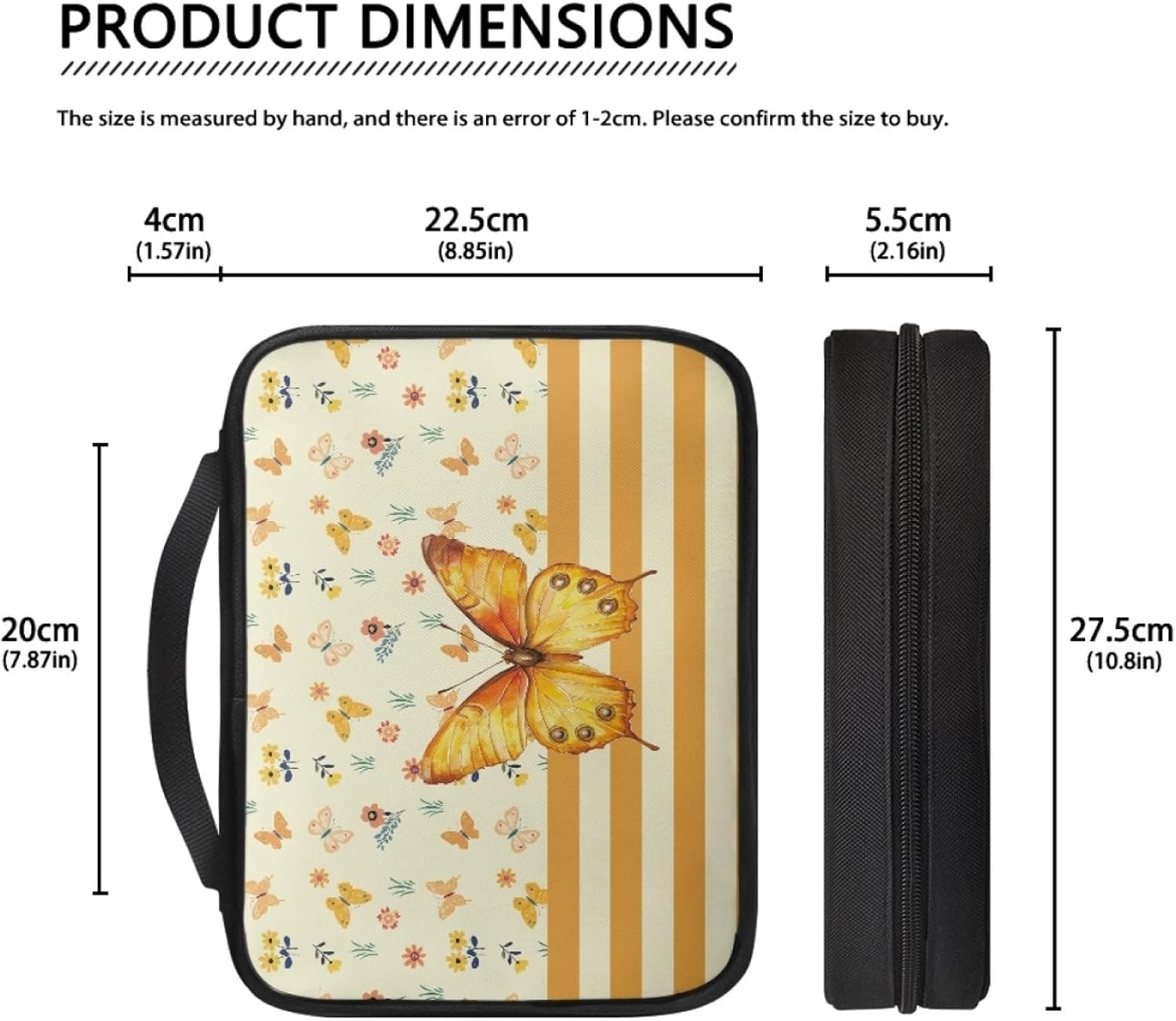 Custodia Libri Chiusura a Zip: L'esterno è dotato di una chiusura a zip resistente, che garantisce che la vostra Bibbia e gli altri oggetti rimangano al sicuro all'interno, impedendo che cadano o si persano. Durante la lettura, la borsa può essere completamente stesa, consentendovi di leggere il libro comodamente senza toglierlo Ampia Applicazione: Design spazioso, manico robusto, leggero e facile da portare. La borsa per Bibbia non è solo una borsa per lo studio religioso, ma anche una borsa a mano, una borsa per il lavoro e una borsa di archiviazione per i viaggi. Potete mettere molte cose all'interno e portarla dove volete Custodia Libro Materiale: La borsa per Bibbia è confezionata con una miscela di tela e poliestere, che unisce la robustezza della tela alla elevata resistenza del poliestere. Vanta un'ottima resistenza all'usura e alle strappature, sopporta l'uso quotidiano e proteggerà la vostra Bibbia per anni Dimensioni Universali: Le dimensioni sono di 27,5 cm di lunghezza, 22,5 cm di larghezza e 5,5 cm di altezza. La borsa per Bibbia ha un ampio spazio interno, e il design a singolo compartimento Elimina la necessità di cercare in più comparimenti, permettendovi di trovare gli oggetti in un attimo Manutenzione Semplice: Resistente alle macchie e impermeabile, la borsa è facile da pulire. Le piccole macchie possono essere eliminate con un panno umido, e è anche lavabile in macchina. Adatta come regalo per amici e familiari