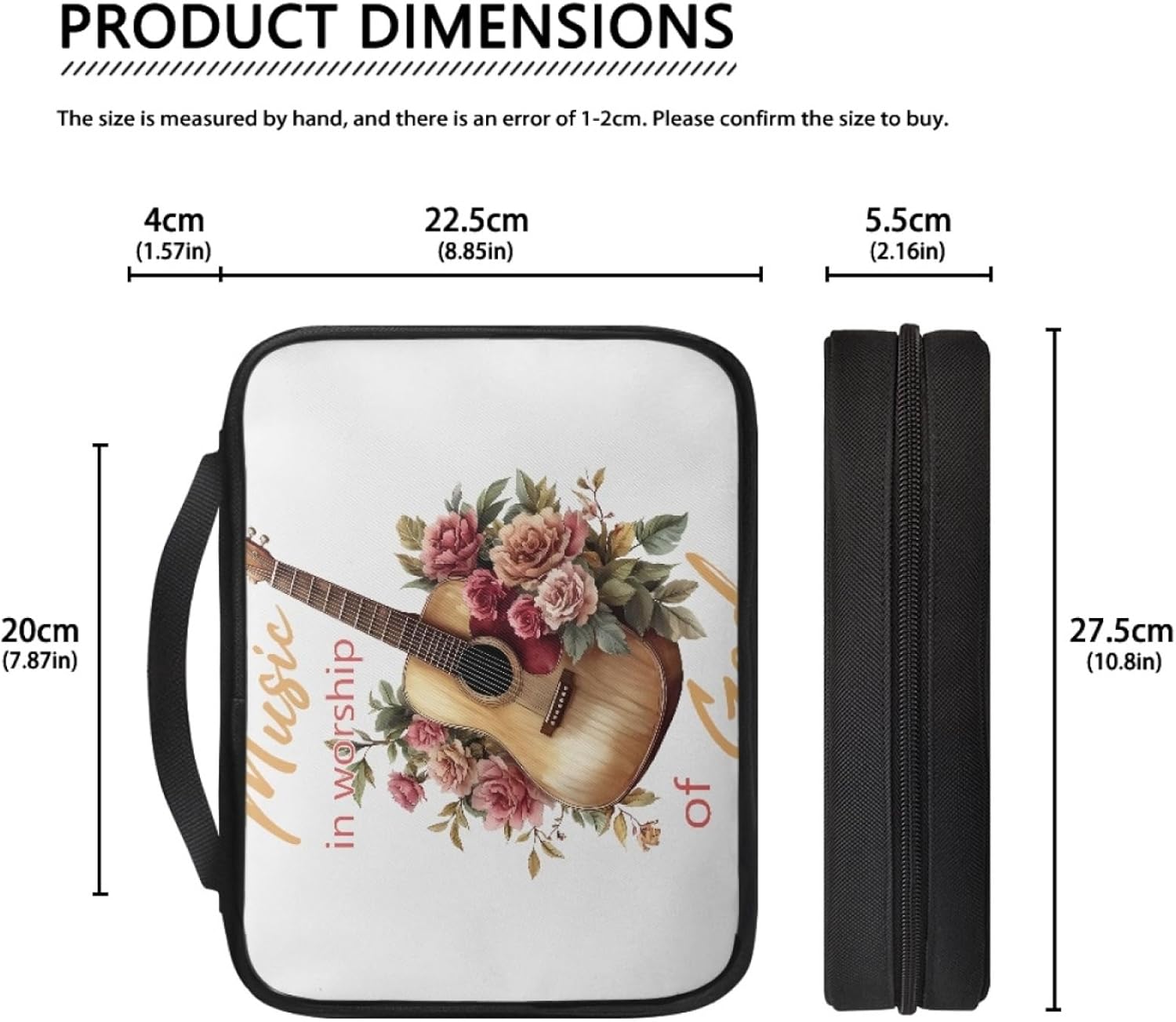 Custodia Libri Chiusura a Zip: L'esterno è dotato di una chiusura a zip resistente, che garantisce che la vostra Bibbia e gli altri oggetti rimangano al sicuro all'interno, impedendo che cadano o si persano. Durante la lettura, la borsa può essere completamente stesa, consentendovi di leggere il libro comodamente senza toglierlo Ampia Applicazione: Design spazioso, manico robusto, leggero e facile da portare. La borsa per Bibbia non è solo una borsa per lo studio religioso, ma anche una borsa a mano, una borsa per il lavoro e una borsa di archiviazione per i viaggi. Potete mettere molte cose all'interno e portarla dove volete Custodia Libro Materiale: La borsa per Bibbia è confezionata con una miscela di tela e poliestere, che unisce la robustezza della tela alla elevata resistenza del poliestere. Vanta un'ottima resistenza all'usura e alle strappature, sopporta l'uso quotidiano e proteggerà la vostra Bibbia per anni Dimensioni Universali: Le dimensioni sono di 27,5 cm di lunghezza, 22,5 cm di larghezza e 5,5 cm di altezza. La borsa per Bibbia ha un ampio spazio interno, e il design a singolo compartimento Elimina la necessità di cercare in più comparimenti, permettendovi di trovare gli oggetti in un attimo Manutenzione Semplice: Resistente alle macchie e impermeabile, la borsa è facile da pulire. Le piccole macchie possono essere eliminate con un panno umido, e è anche lavabile in macchina. Adatta come regalo per amici e familiari