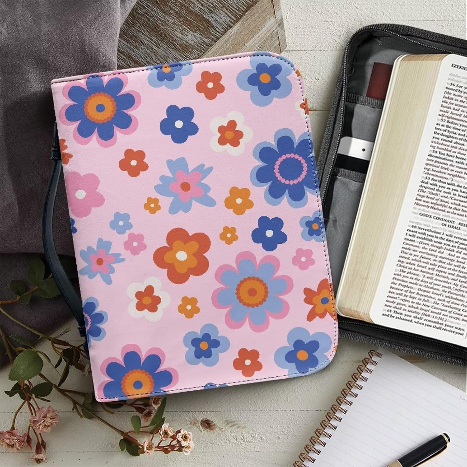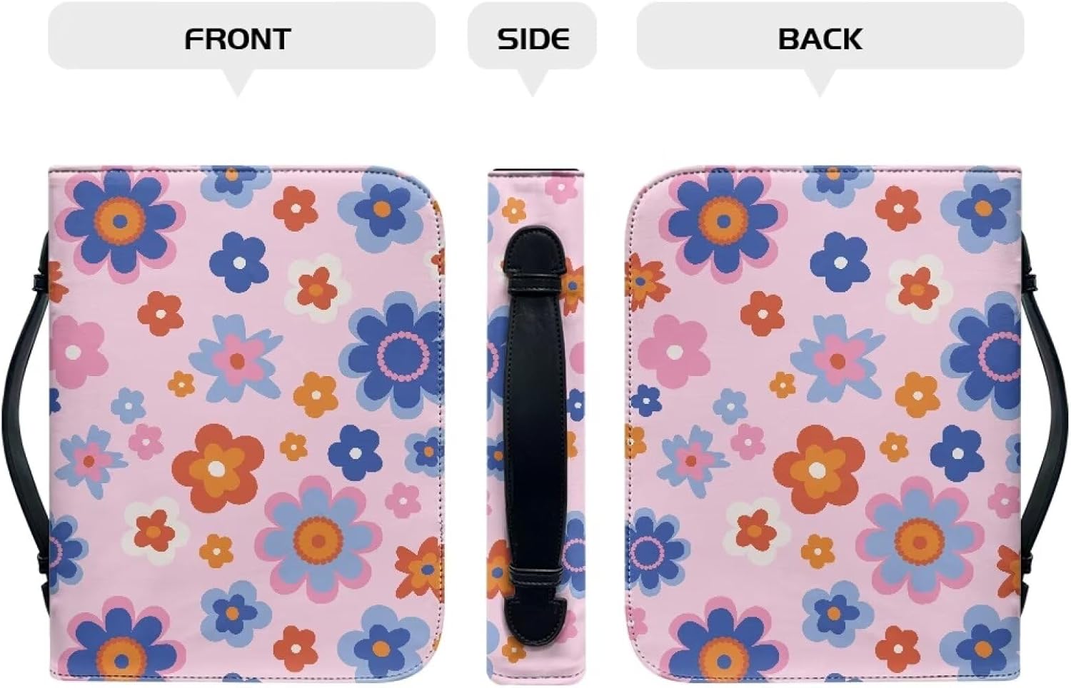 Custodia per bibbia colorata con tasca con cerniera e manico, borsa da donna in pelle PU per studio biblico di dimensioni standard e grandi