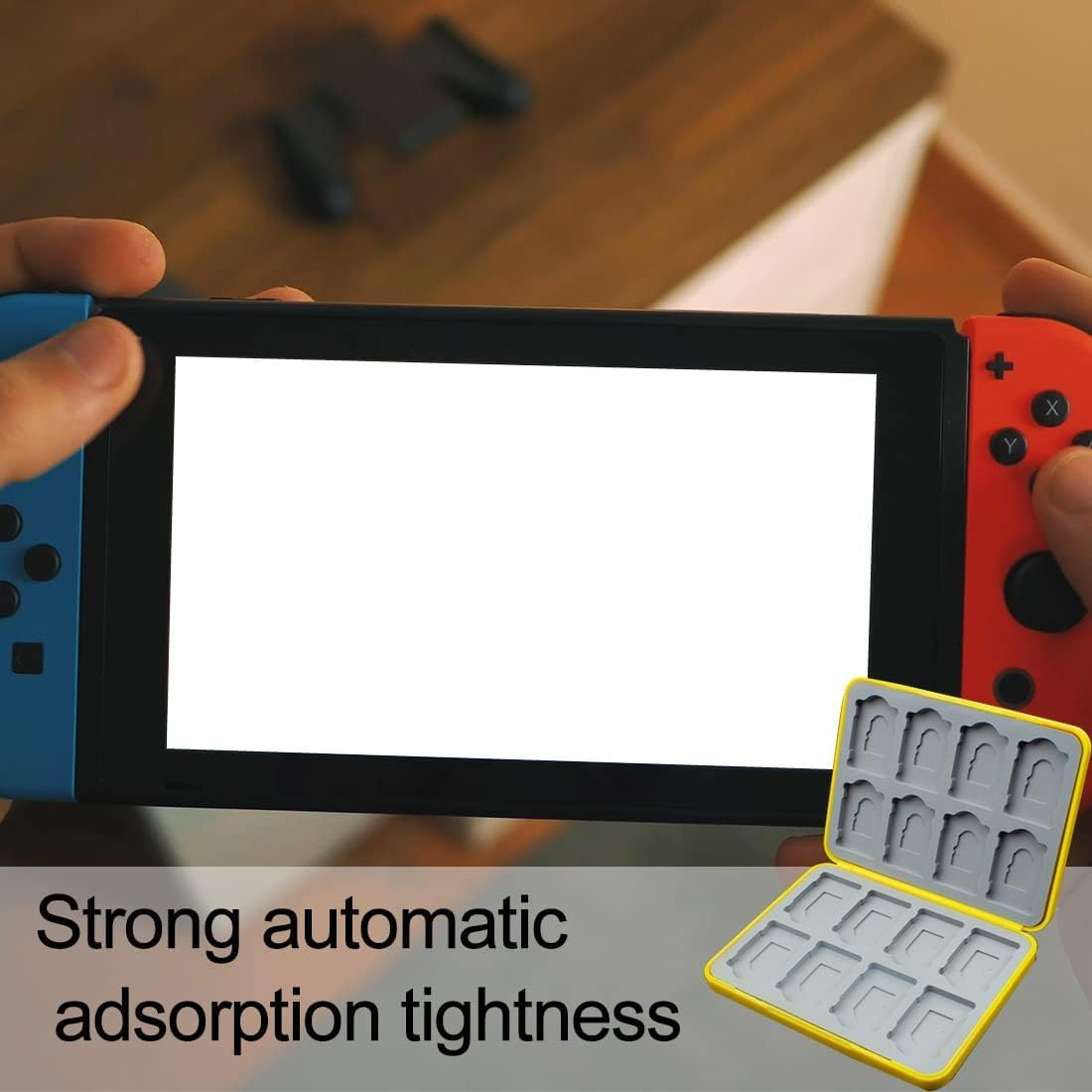 La superficie della custodia per carte da gioco è rivestita con materiale ABS antigraffio per evitare polvere, graffi, urti e urti. Il rivestimento interno è realizzato in silicone di alta qualità, che fornisce una protezione completa e garantisce la sicurezza delle tue carte da gioco. La custodia realizzata con il sistema di chiusura magnetica rende l'accesso alle carte da gioco più comodo e veloce, mantenendo una chiusura ottimale senza perdere le carte durante il trasporto quotidiano. Design comodo e compatto, dimensioni salvaspazio, può essere tenuto in una mano o messo in una tasca o borsa. Questa scatola di archiviazione per carte da gioco può contenere fino a 16 carte da gioco e 16 schede micro SD, lo slot per schede in silicone morbido è progettato secondo la scheda originale 1: 1, che può fissare in modo sicuro e affidabile carte da gioco e schede TF. Consente di organizzare facilmente le tue carte preferite in modo da poterle trasportare facilmente in viaggio. Adatto per viaggi, viaggi d'affari, riunioni di amici, ecc.