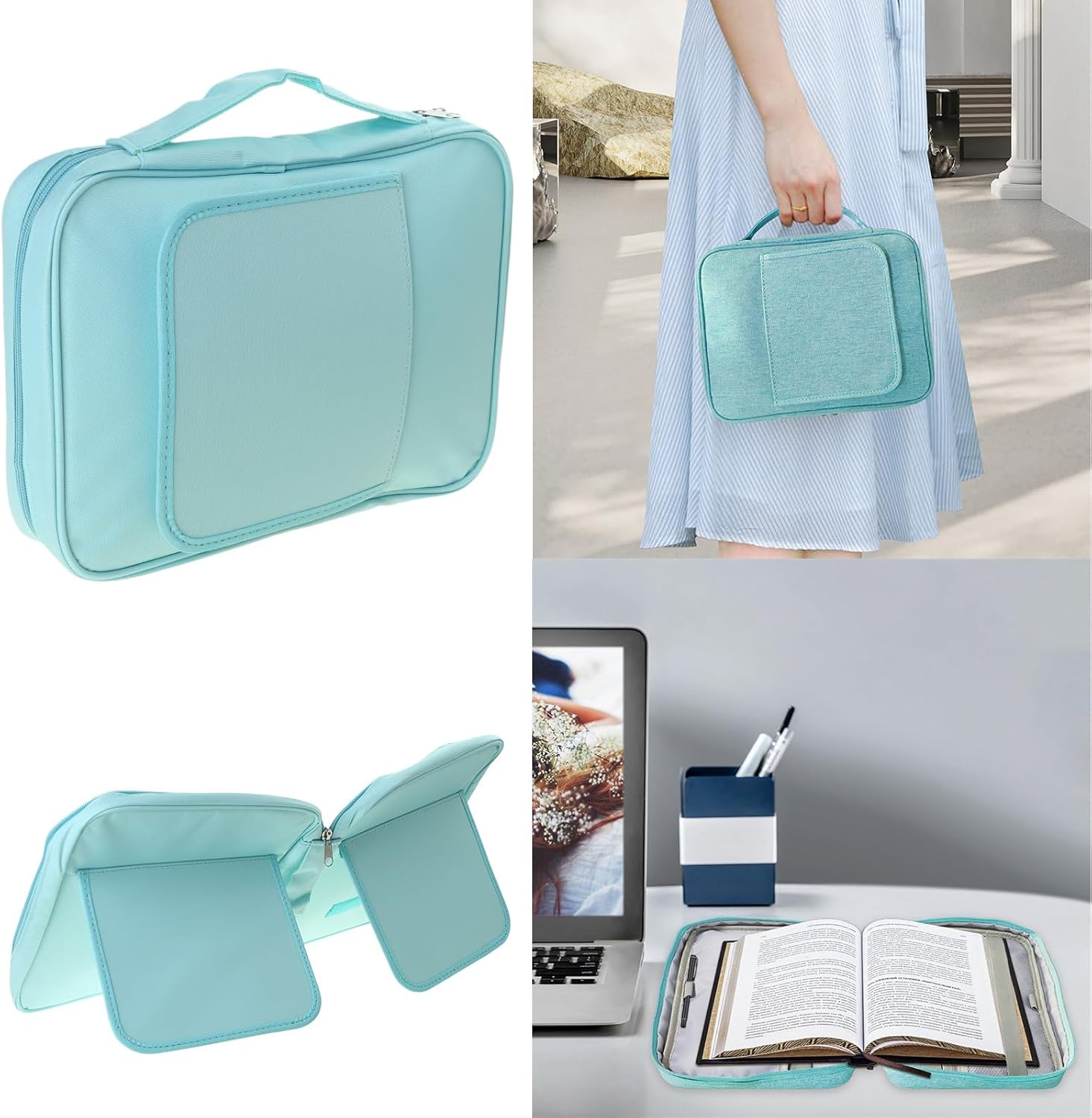 Libro biblico con manico e supporto per libri, aggiunge la lettura, rilassa il collo e riduce l'affaticamento. Bibbia con leggio è ideale per lo studio o la preghiera. Mantieni i tuoi libri e la tua Bibbia organizzati con questa custodia, facile da leggere e ordinare. Un regalo di Natale e regalo di compleanno per familiari e amici. Il libro biblico non è solo una borsa, può anche essere una borsa per il trucco, una borsa per tablet, rendendo la tua organizzazione più ordinata e bella.