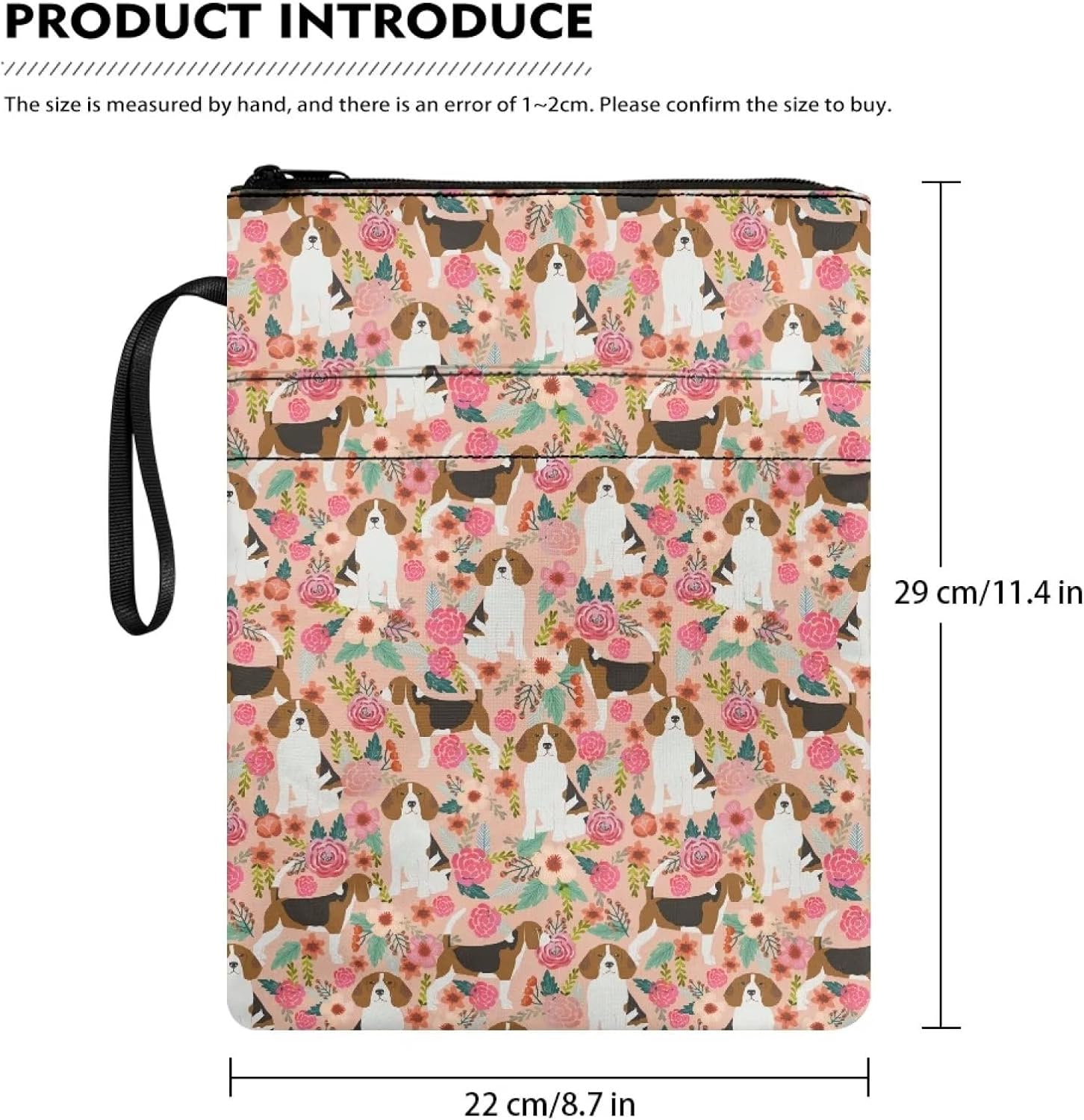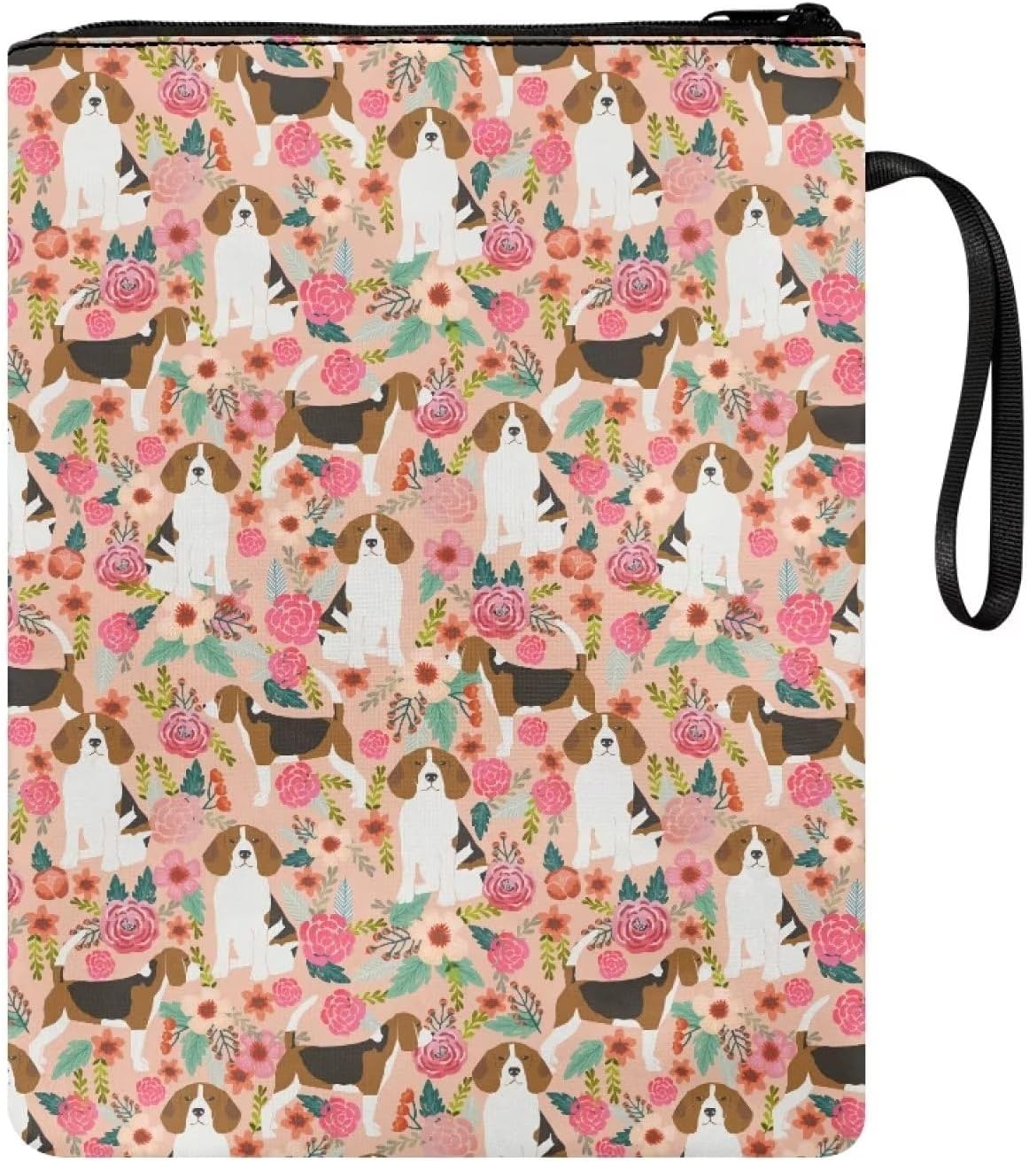Custodia per libri con Beagle Floral Lovers Libri di testo Lavabile Riutilizzabile Custodia per libri Protettiva Pounch con cerniera