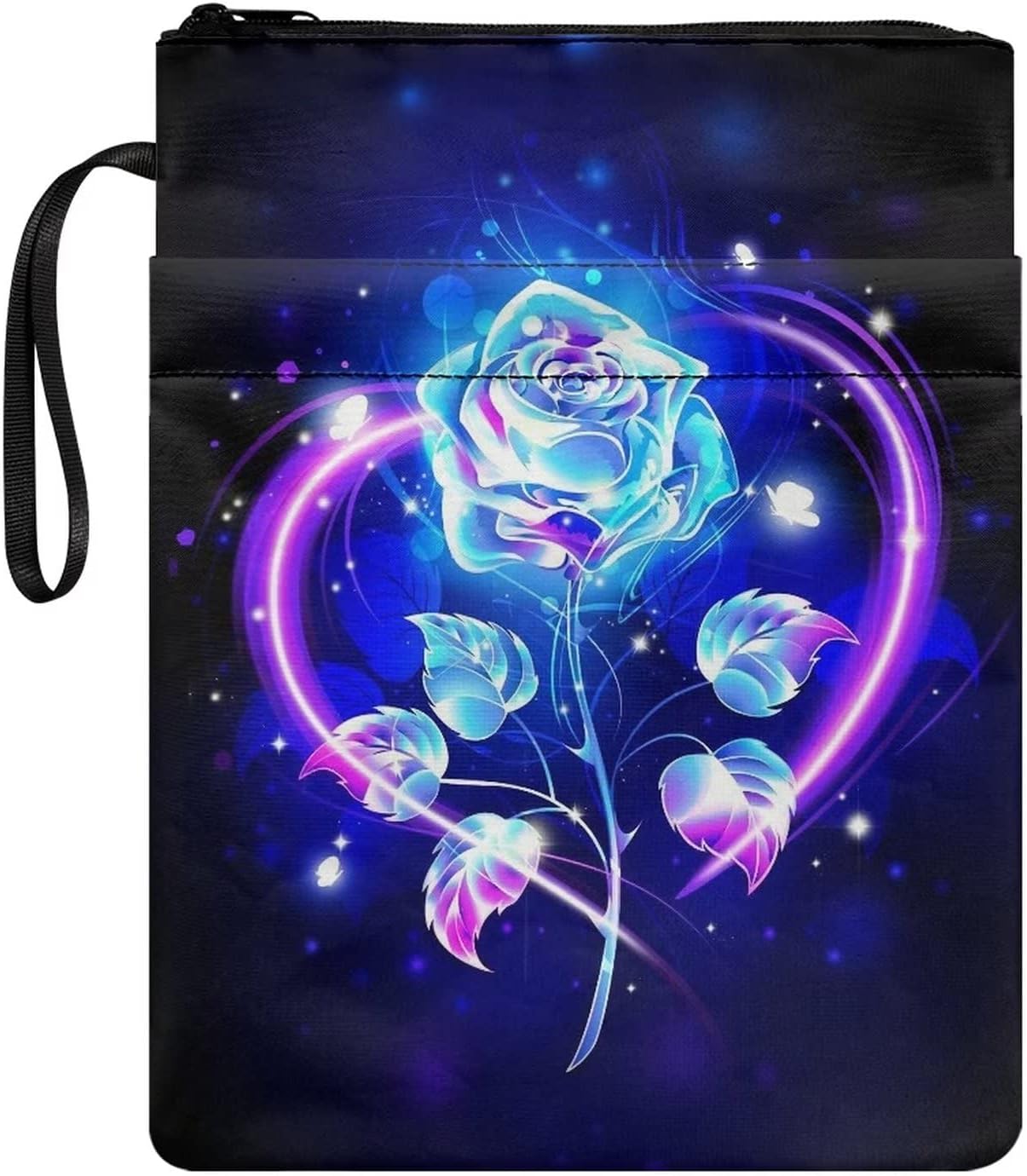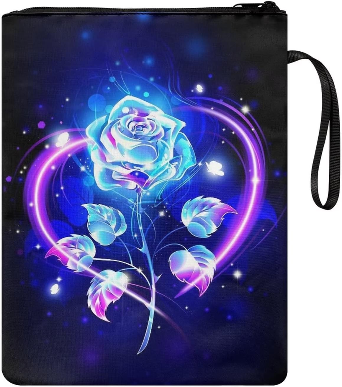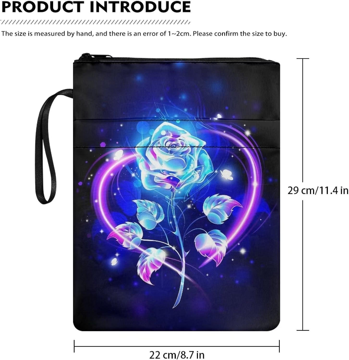 Custodia per libri con motivo floreale blu a forma di rosa, per gli amanti dei libri, copertina rigida, con cerniera, pratica borsa per insegnanti, studenti, adolescenti