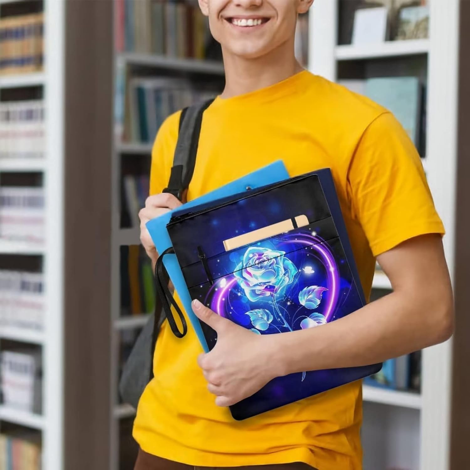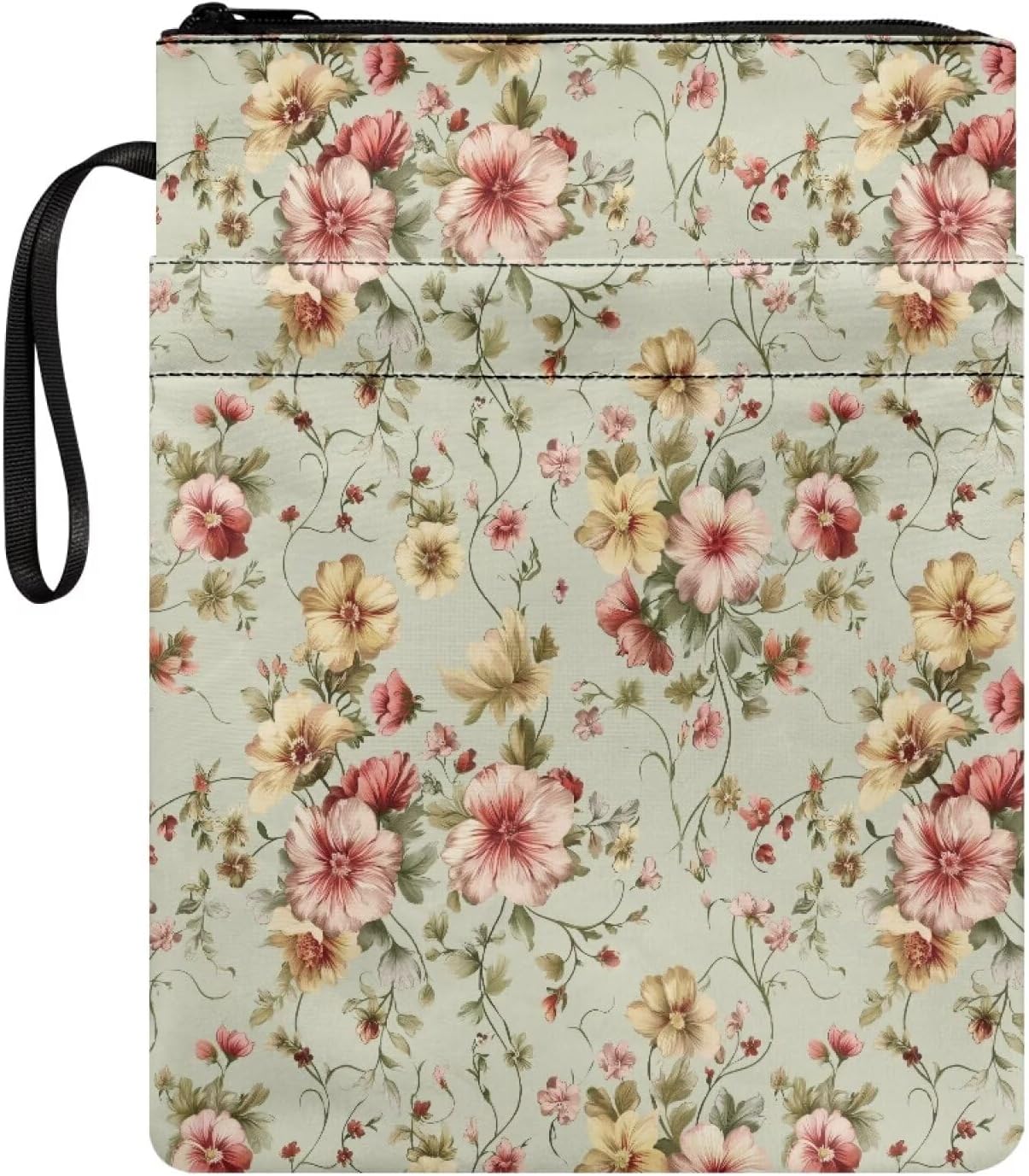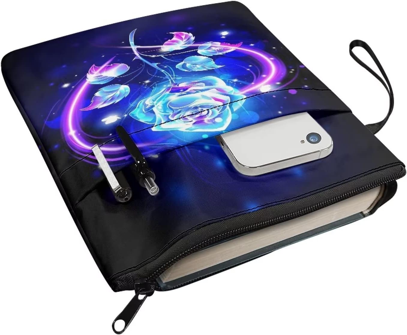 Custodia per libri con motivo floreale blu a forma di rosa, per gli amanti dei libri, copertina rigida, con cerniera, pratica borsa per insegnanti, studenti, adolescenti