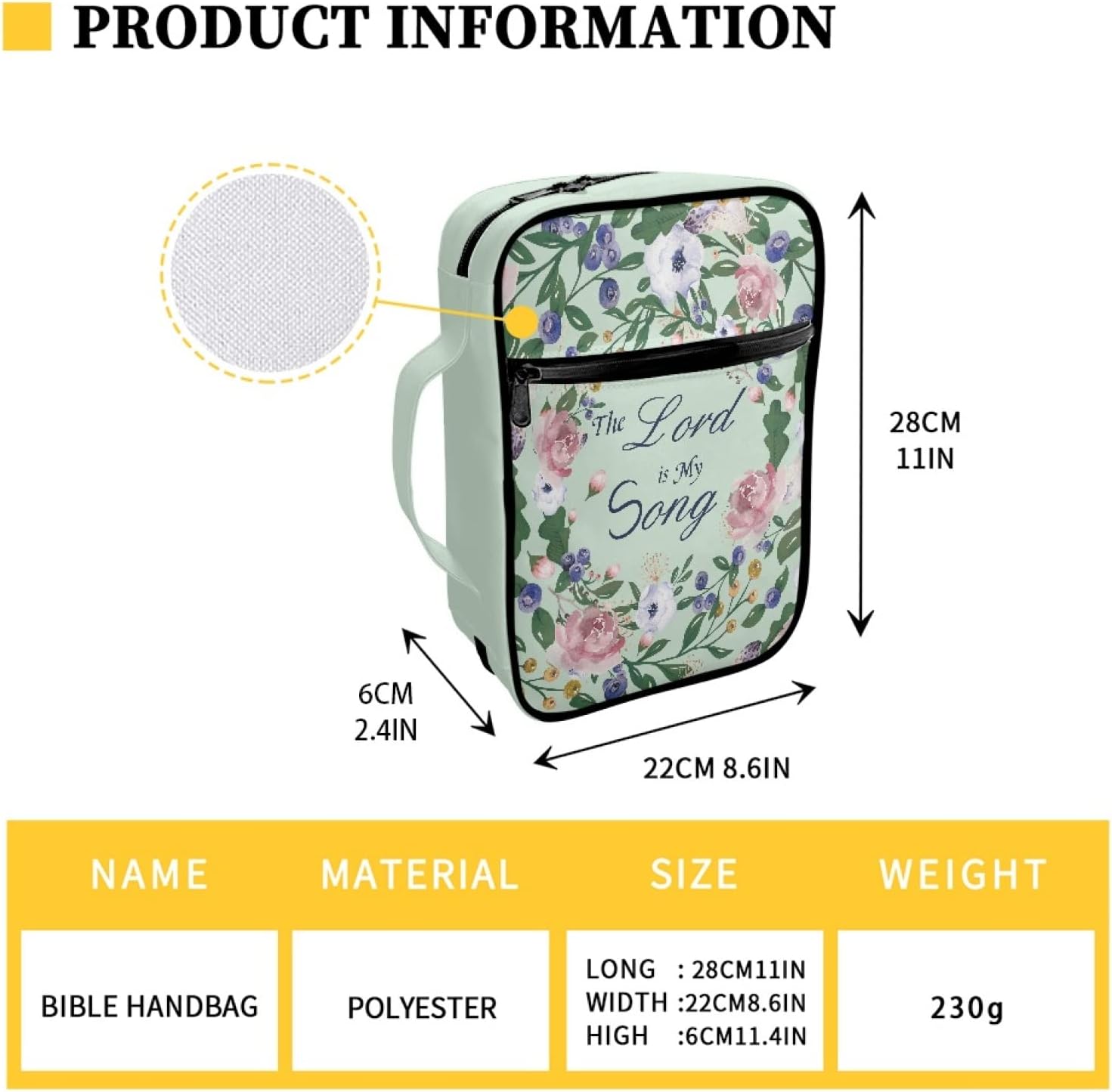 ★Materiale: è realizzato in tessuto di poliestere di alta qualità, resistente e robusto, leggero e lavabile. Non è una copertura rigida, molto flessibile da usare. ★Dimensioni: 28 x 6 x 22 cm, perfetta per la maggior parte delle Bibbie (grandi, standard) o libri. ★ Caratteristiche: questa elegante copertina biblica è ideale per proteggere la Bibbia o il libro da graffi tutto il tempo. La tasca posteriore con cerniera può contenere un piccolo blocco note, penna, telefono cellulare o alcune piccole cose. Le tasche interne possono contenere penna, evidenziatore, segnalibri, biglietti di preghiera e quaderni, ecc. Viene fornito con 1 cintura segnalibro e la maniglia su questo rende così portatile per portarlo in chiese, scuole, biblioteche. stanze di studio, viaggio,, in qualsiasi momento per il tuo studio biblico. ★ Multifunzionale e alla moda: design pratico che non solo da utilizzare come custodia della Bibbia, ma anche come borsa per cosmetici da viaggio, borsa per notebook, ecc. Stampa carina e alla moda ti porterà più felice. Vari colori e stampe tra cui scegliere, come girasole, cavallo, stampa animale, galassia, frutta, tartaruga, fiori vintage, bandiera americana, ecc. ★ Bel regalo: questa borsa per libri da trasporto è un regalo perfetto per familiari, amici, amanti per feste cristiane, giorno del Ringraziamento, Natale o altre feste.